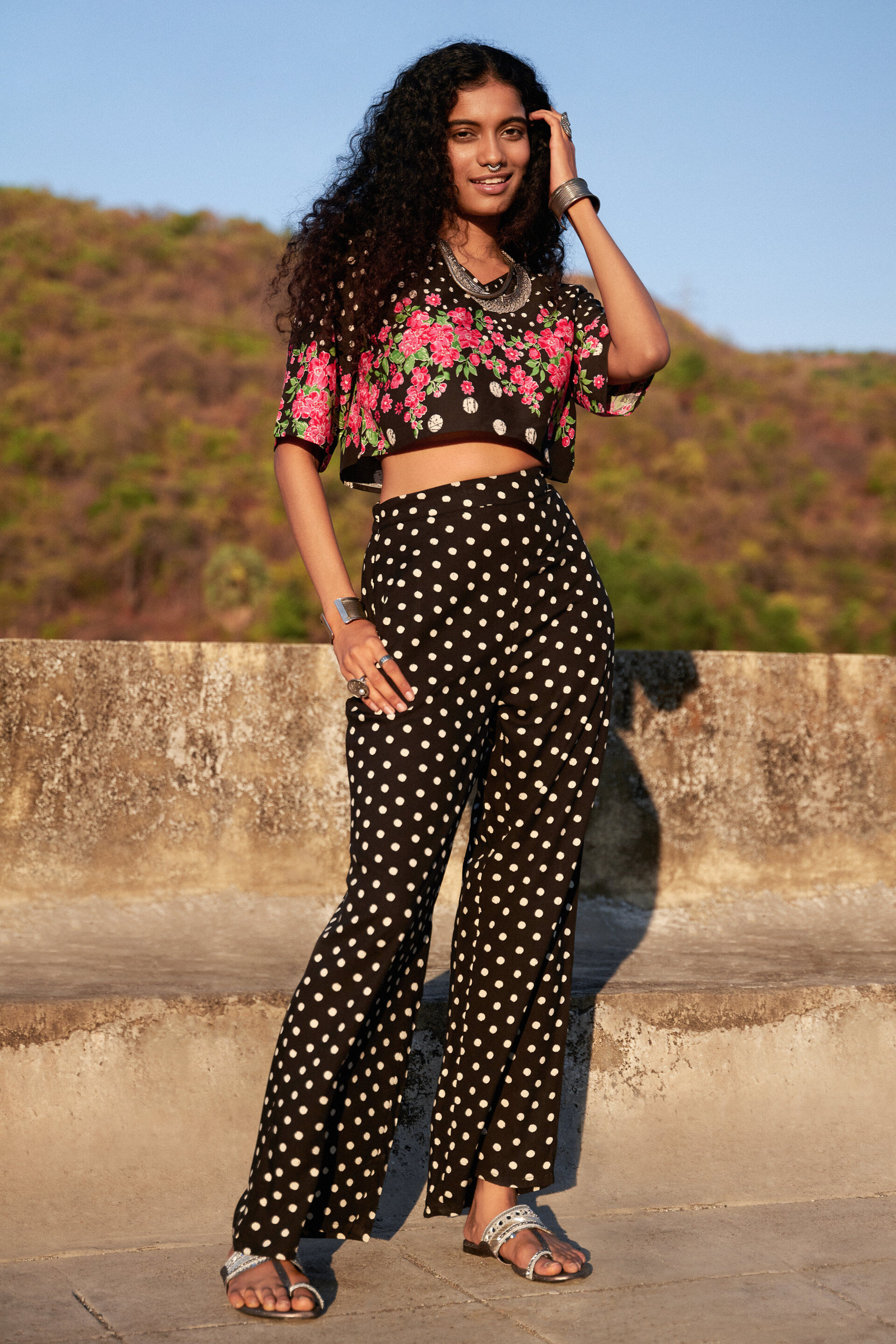 An urban-chic choice for your weekend at the flea market. Fashioned from soft viscose fabric, adorned with a pop of pink floral print. Elevate the look with our oxidised silver chunky choker.