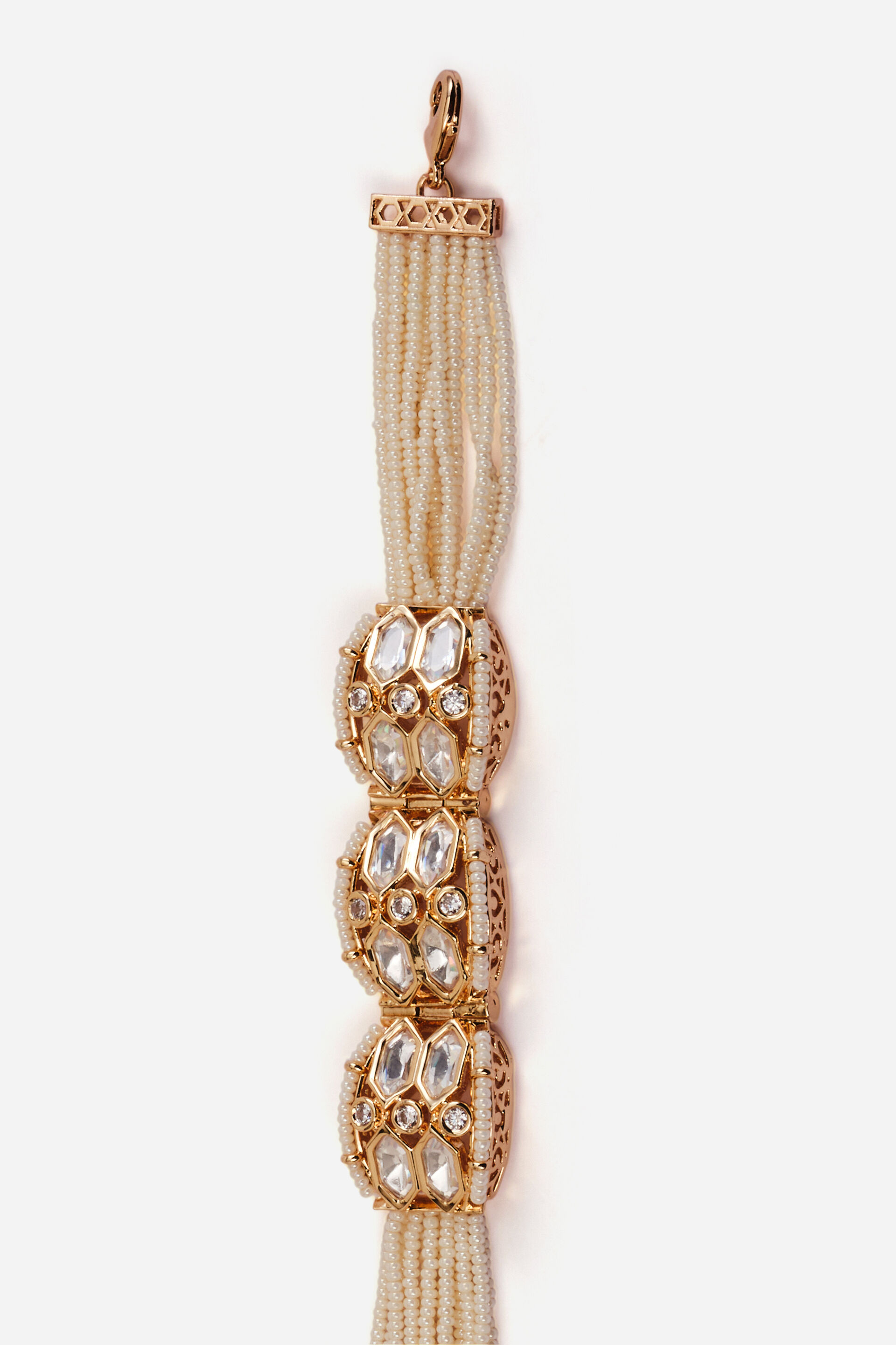 Add a timeless charm to your festive look with our Aisha Bracelet, adorned with delicate pearls and intricate Kundan detailing. Finished with a gleaming gold plating and an easy clasp closure, it’s designed for effortless wear and refined style.