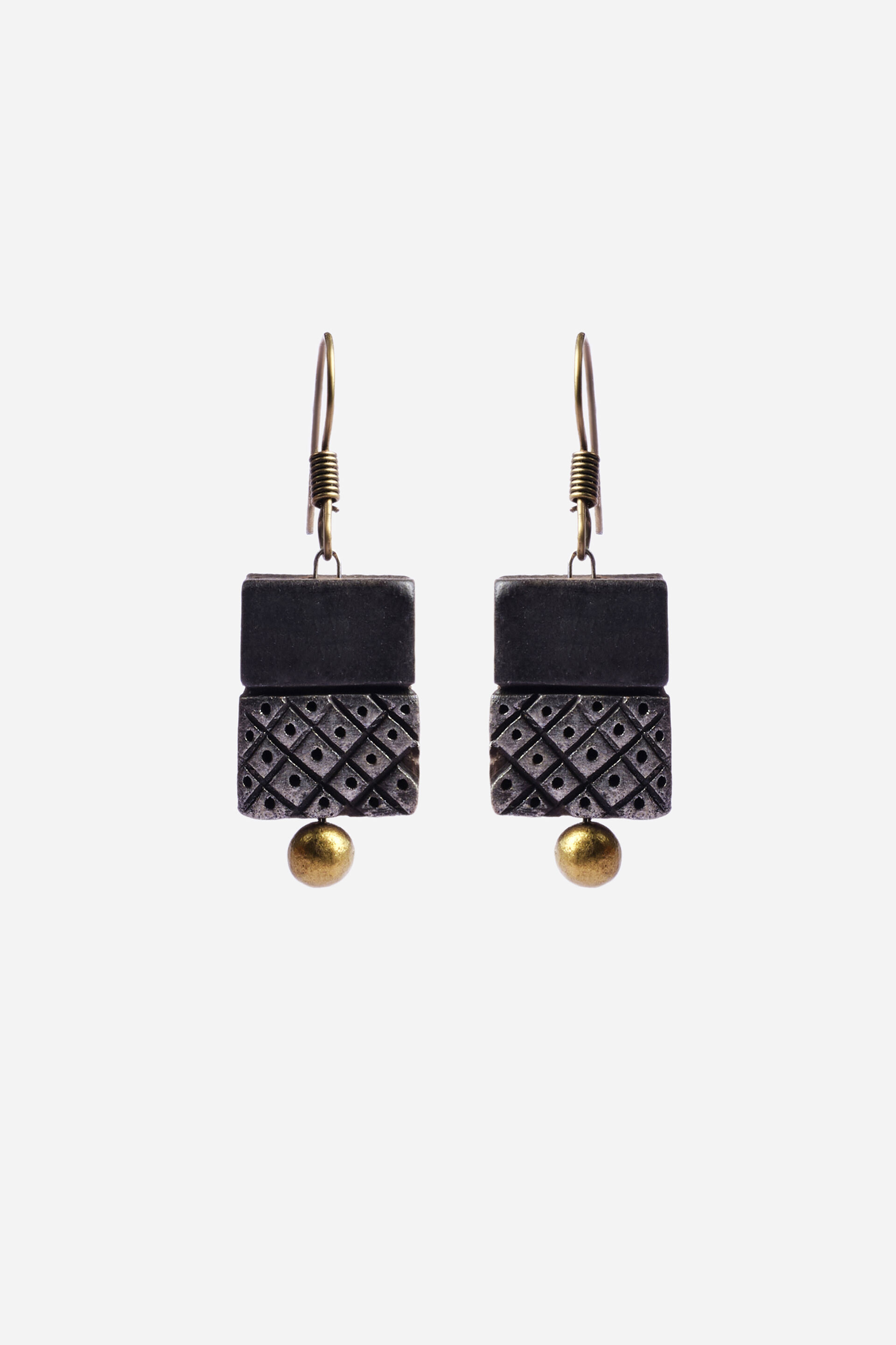 Elegant danglers in deep grey tones, crafted from clay, thread, and brass with a hook closure. Lightweight and eye-catching, they’re perfect for adding a festive sparkle to your evening look.