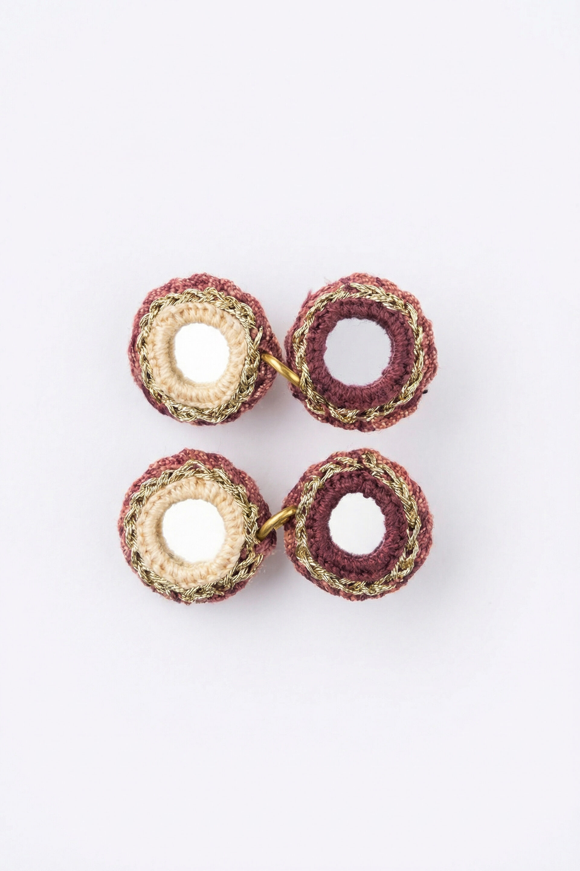 Dual-tone round danglers with layered circular elements in a drop silhouette.