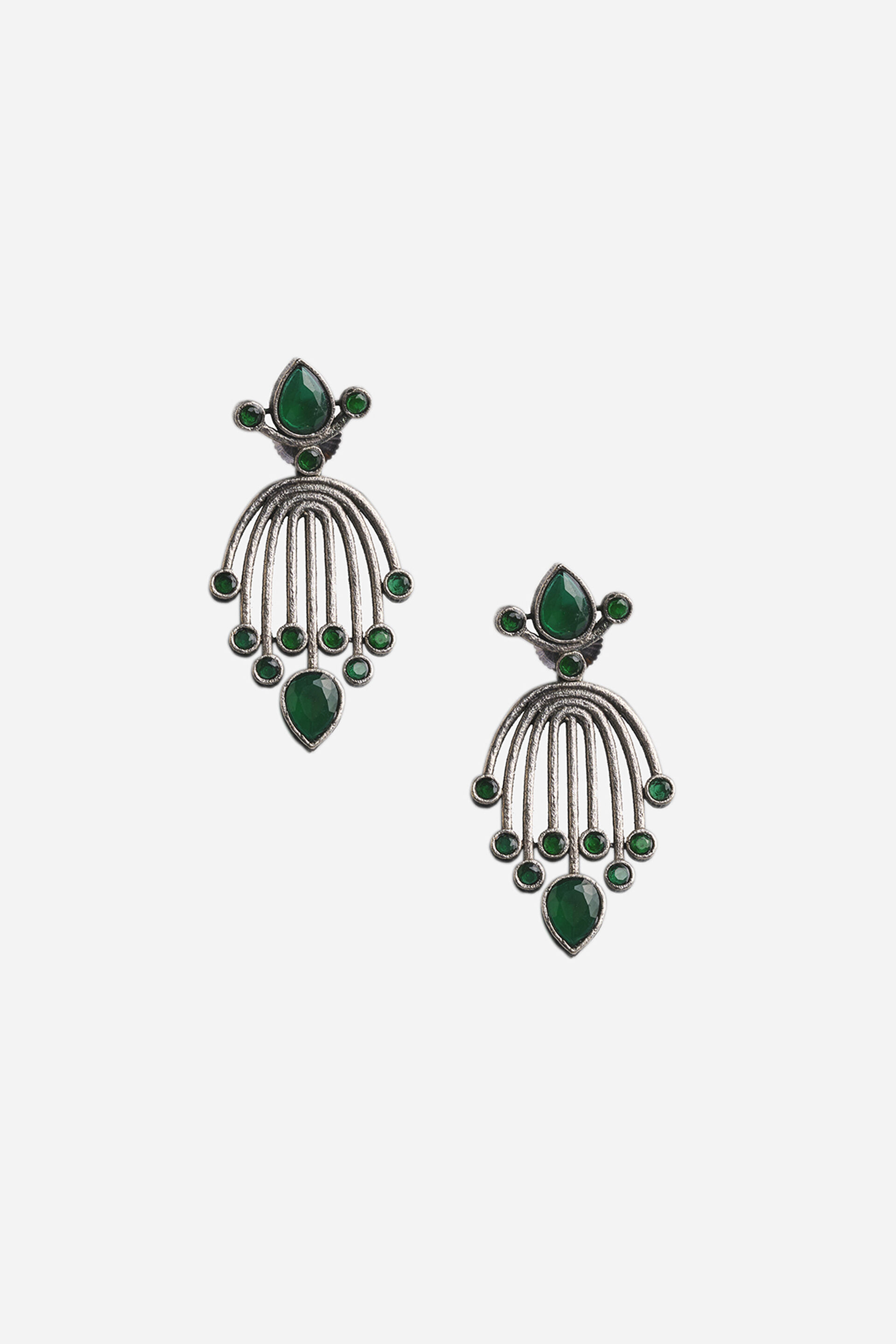 Our Flower Ray Silver Earrings flaunt delicate floral shapes that are elevated with coloured stones. Crafted lovingly for the modern desi woman, this pair can be styled with your breezy linen dresses or hand-block printed ethnic sets.
