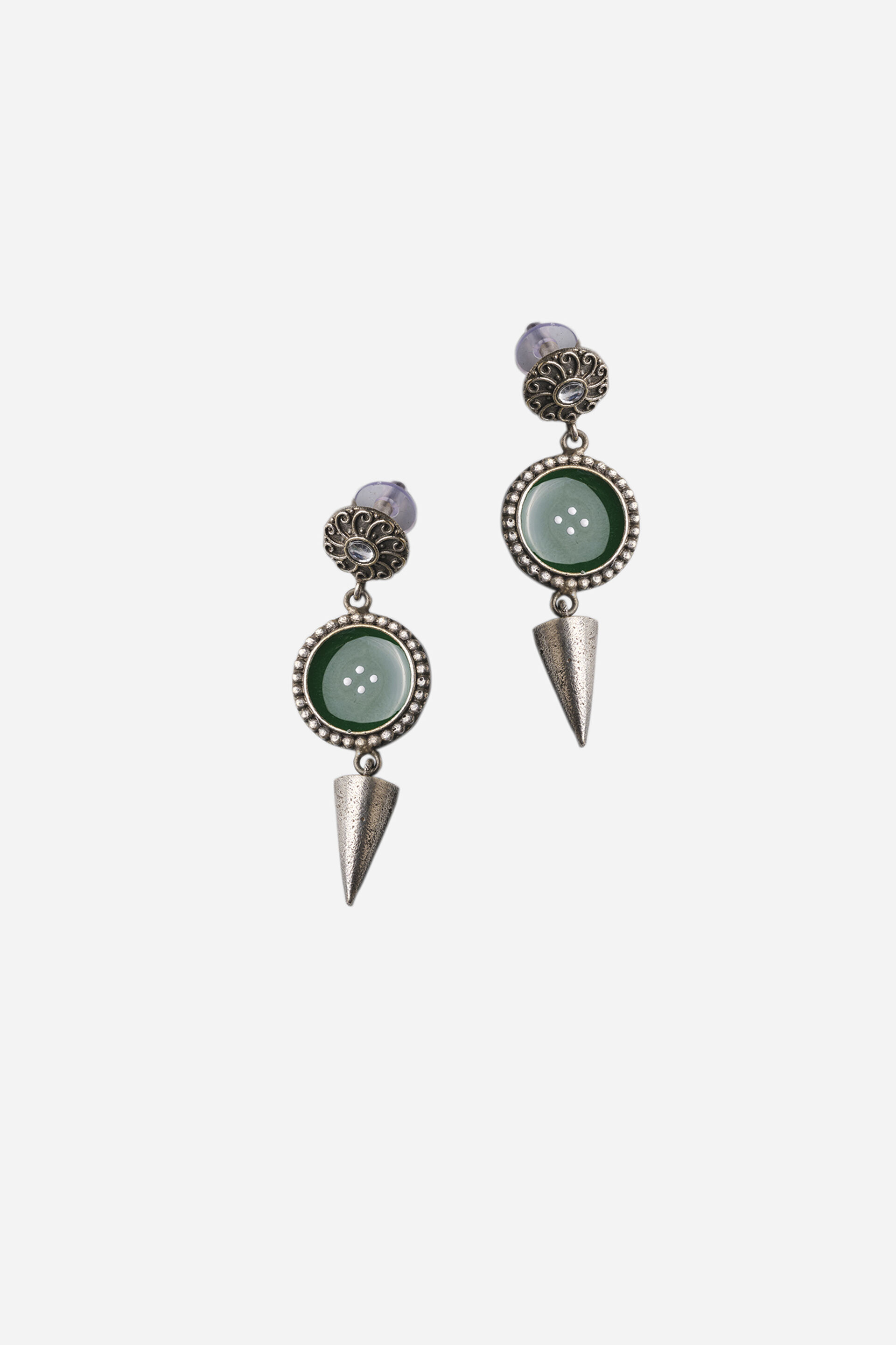 These eclectic Stone Spike Drop Earrings feature a unique design featuring coloured center details. Perfect for adding a dash of enchantment to any outfit, this pair looks great with your denim & kurta looks or ethnic suit set pairings.