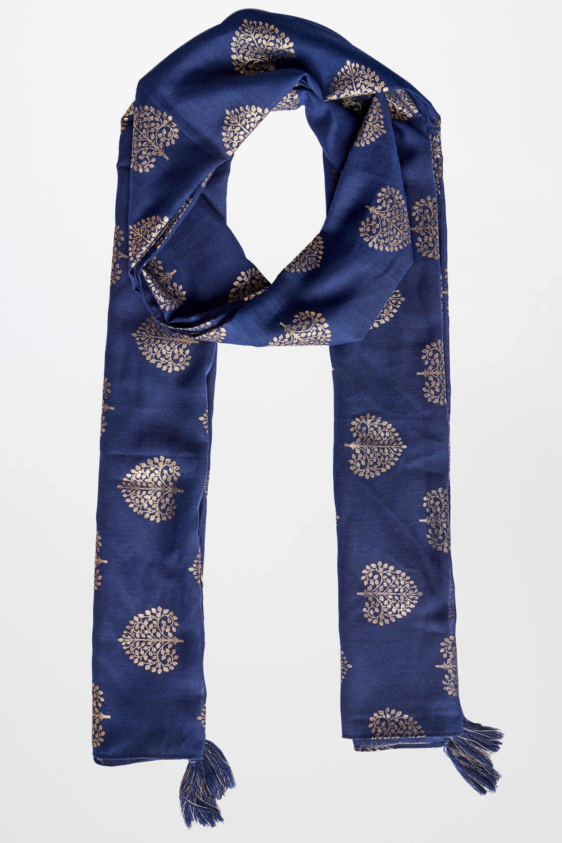 Stylise your solid tops and kurtas with this elegant stole for women from Global Desi. Fashioned in soft material with gold foil printed motifs for utmost comfort in a stunning navy blue. Adorn it in different ways and accessorize suiting the occasion. Manufactured by - Ochre and Black Private Limited, Plot No R 847/1/1, TTC Ind. Area, MIDC, Rabale, Navi Mumbai, India –400701 Country of origin: India