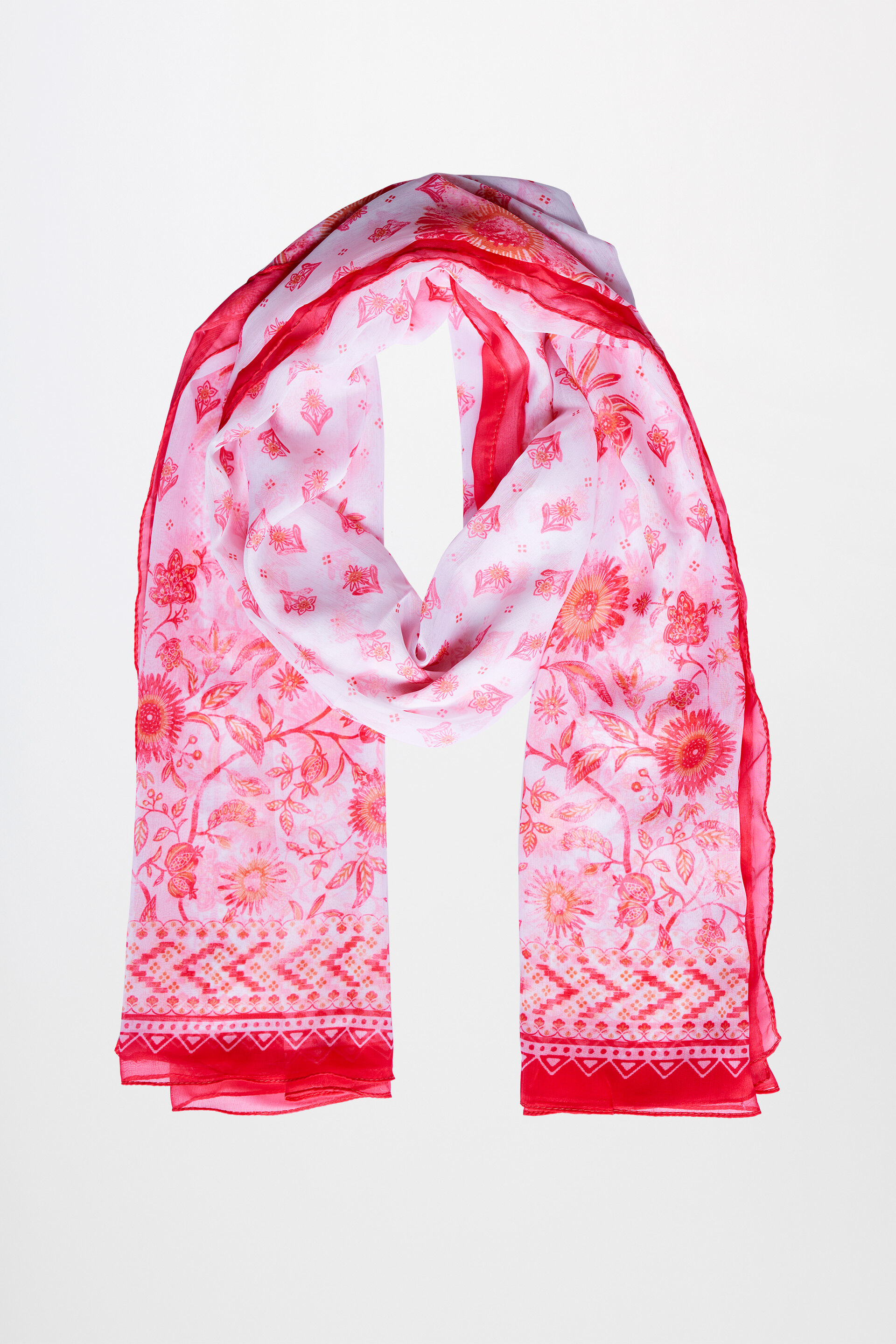 Stylise your solid tops and kurtas with this elegant floral printed stole for women from Global Desi. Fashioned in soft material for utmost comfort in stunning white and red. Adorn it in different ways and accessorise suiting the occasion.