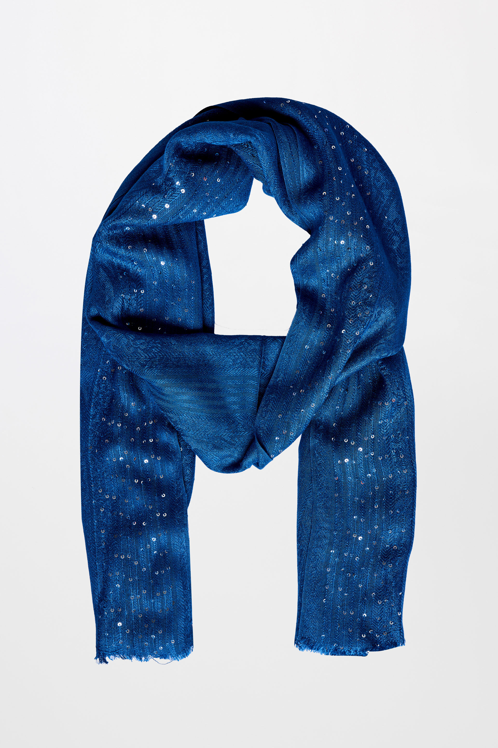 Stylise your solid tops and kurtas with this elegant stole for women from Global Desi. Fashioned in soft material for utmost comfort in stunning indigo with self-design and sequin detail. Adorn it in different ways and accessorize suiting the occasion.