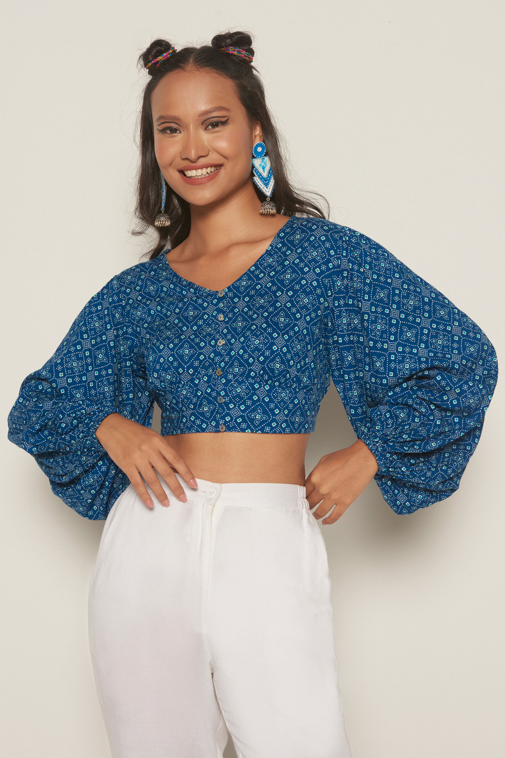 The illustrated geometric print on a bold hue makes this crop top ideal for fun-filled days. Playful yet chic, it allows you to move freely.