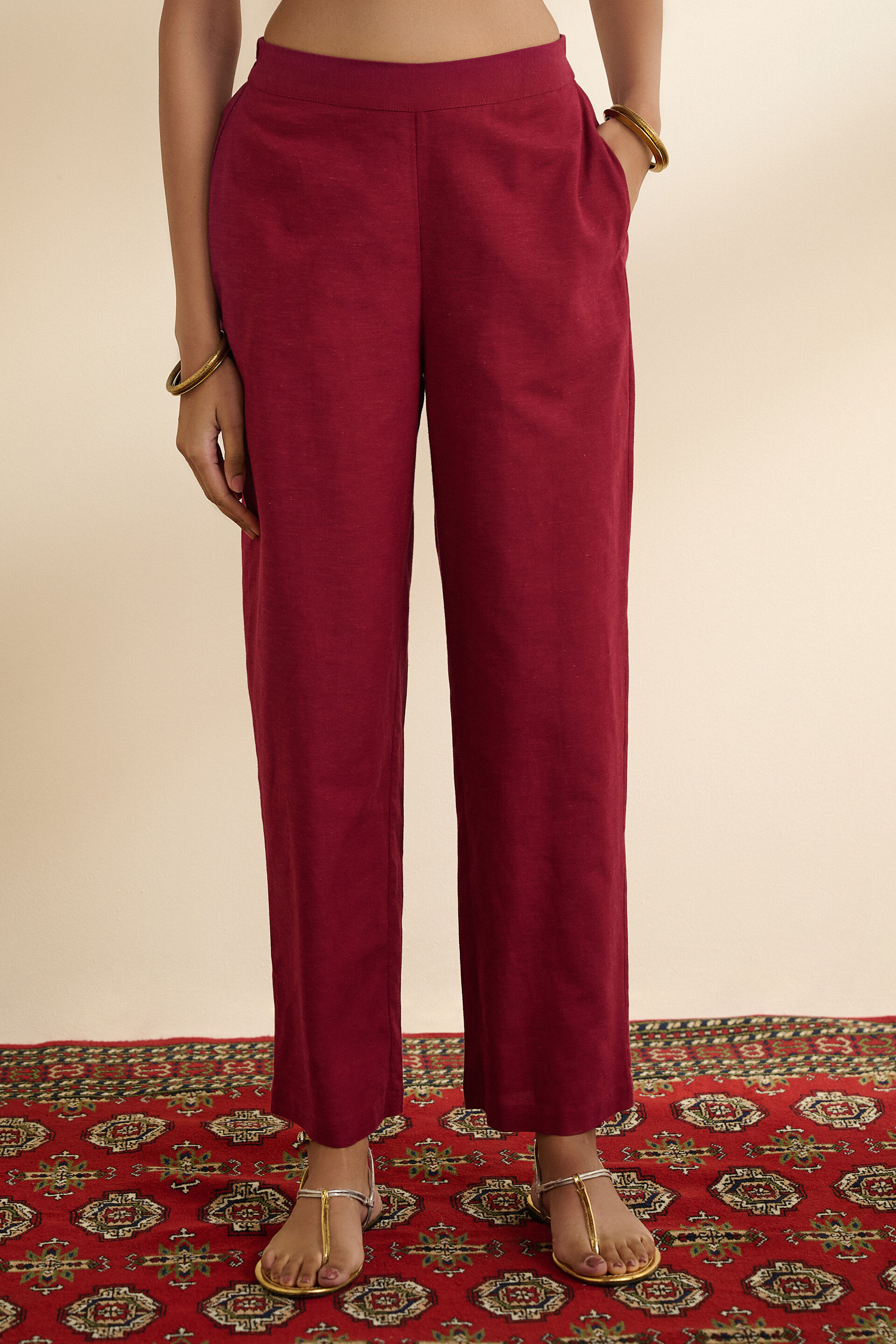 Add this versatile pair of straight fit pants with your kurtas or breezy shirts. Crafted from the softest rayon linen fabric for utmost comfort and the perfect fitting. This pair of bottoms is a must-have in your wardrobe.