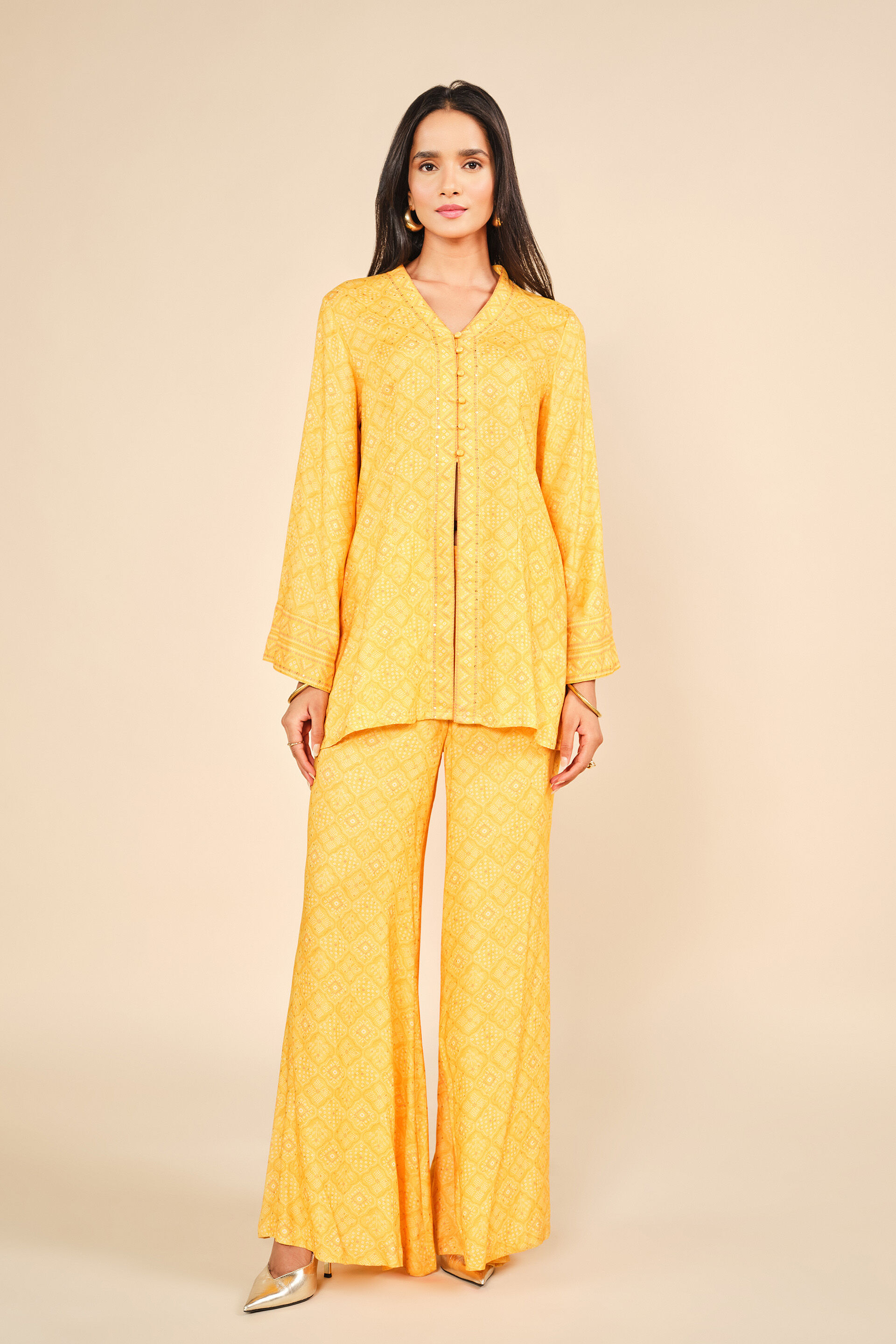 Celebrate in style with our Genda Ishq Co-ord , designed from soft and breathable viscose fabric for a comfortable fit. The V-neckline kurta, along with flared bottoms, features India-inspired prints & offers a relaxed yet chic silhouette. This vibrant set is the perfect finishing touch, making it an ideal option for your celebratory moments.