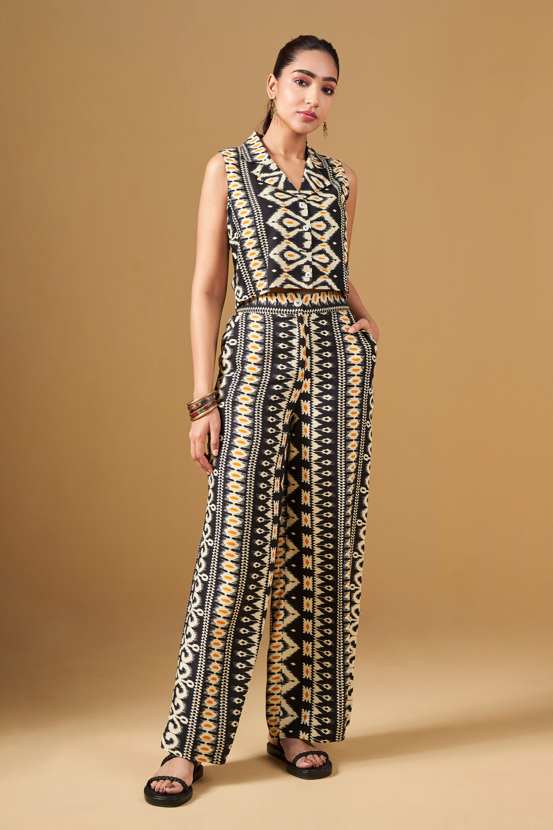 Ikat Print Viscose Cropped Co-Ord
