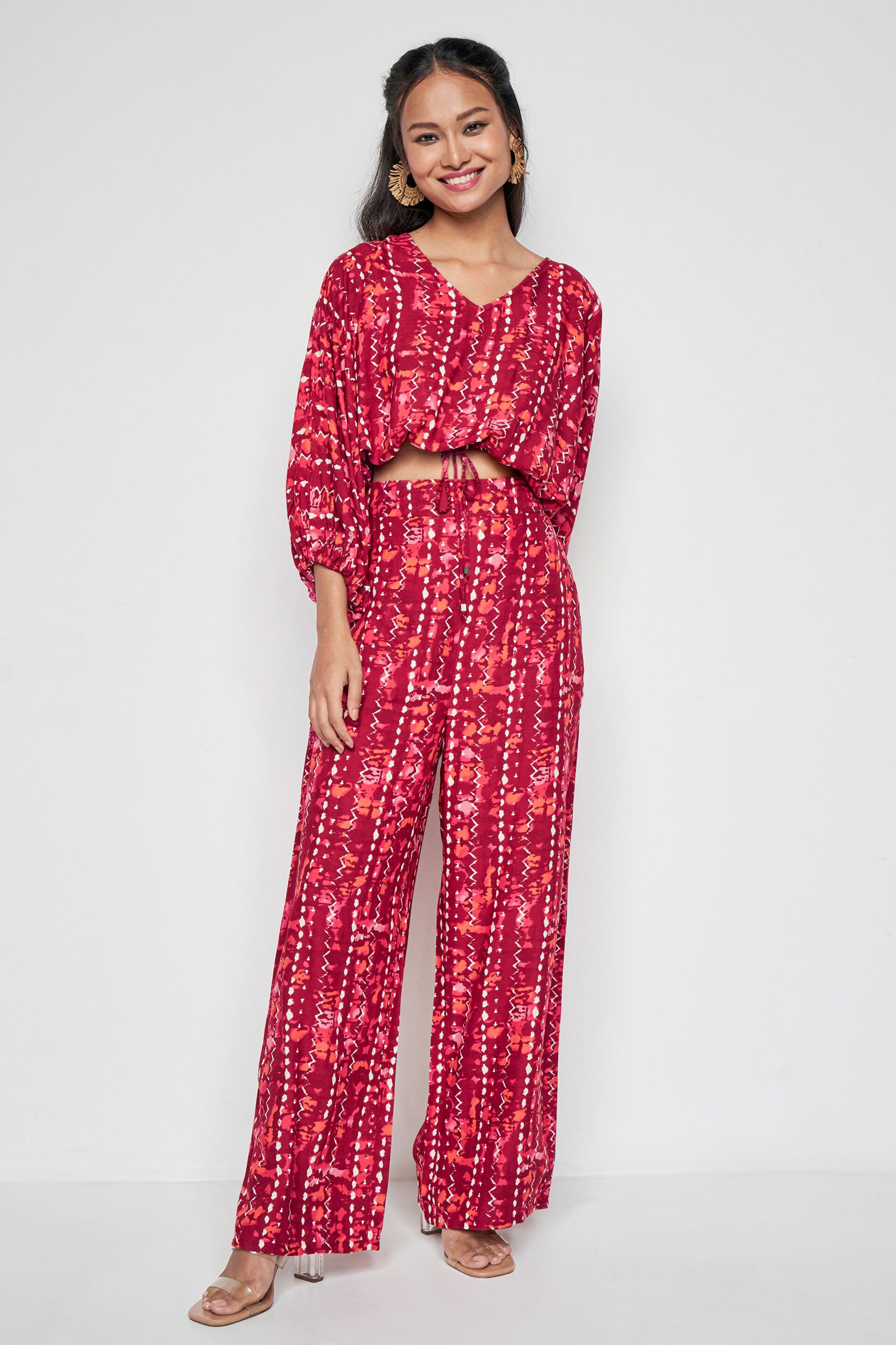 Crafted in a breathable material, our In the Red coord set is made of breezy bottoms and a slightly oversized top with an adjustable drawstring closure.