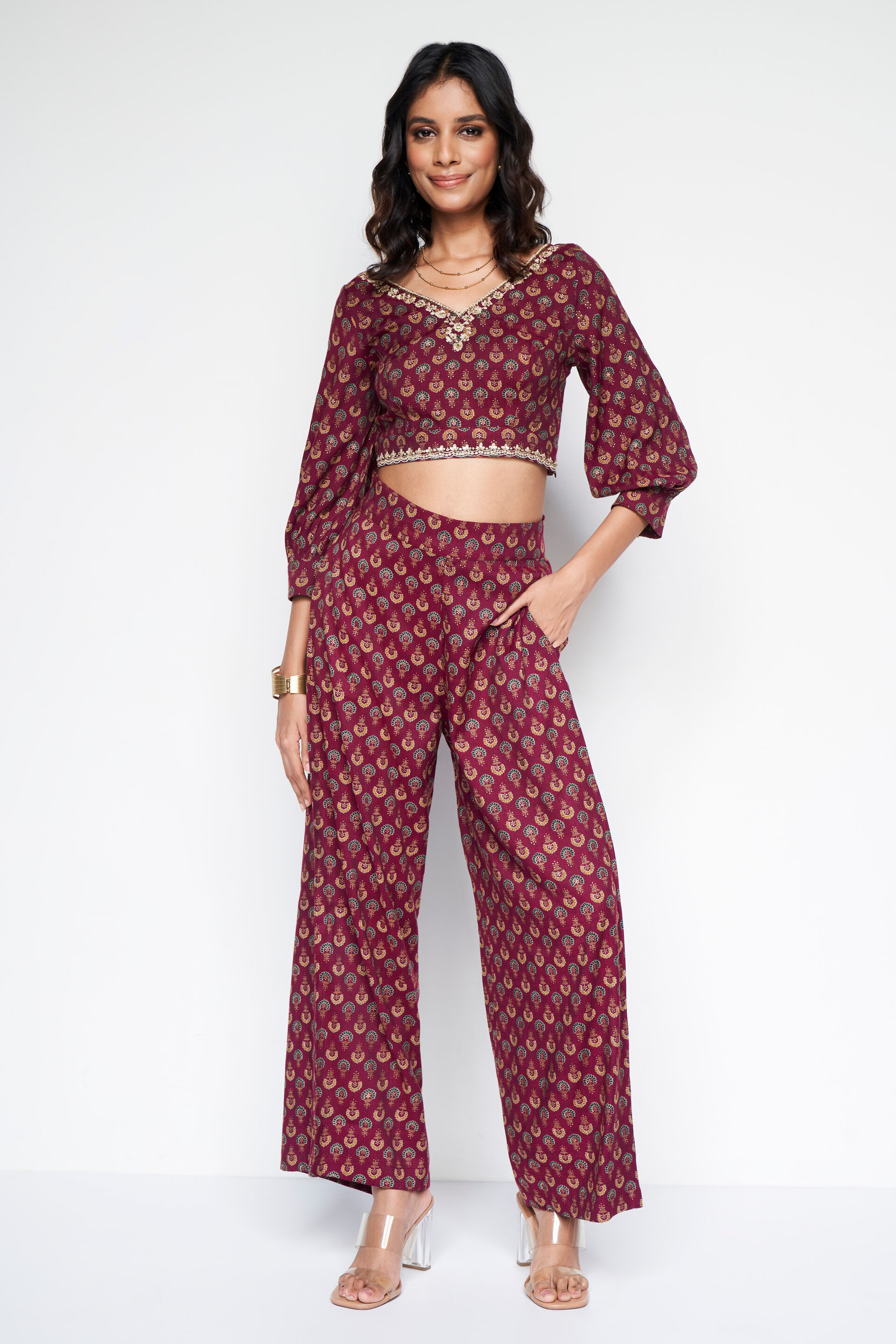 This set has an ethnic print all over, with delicate embroidery on the neckline and waist. Its relaxed silhouette makes it the perfect fit for festivties that last all day long.