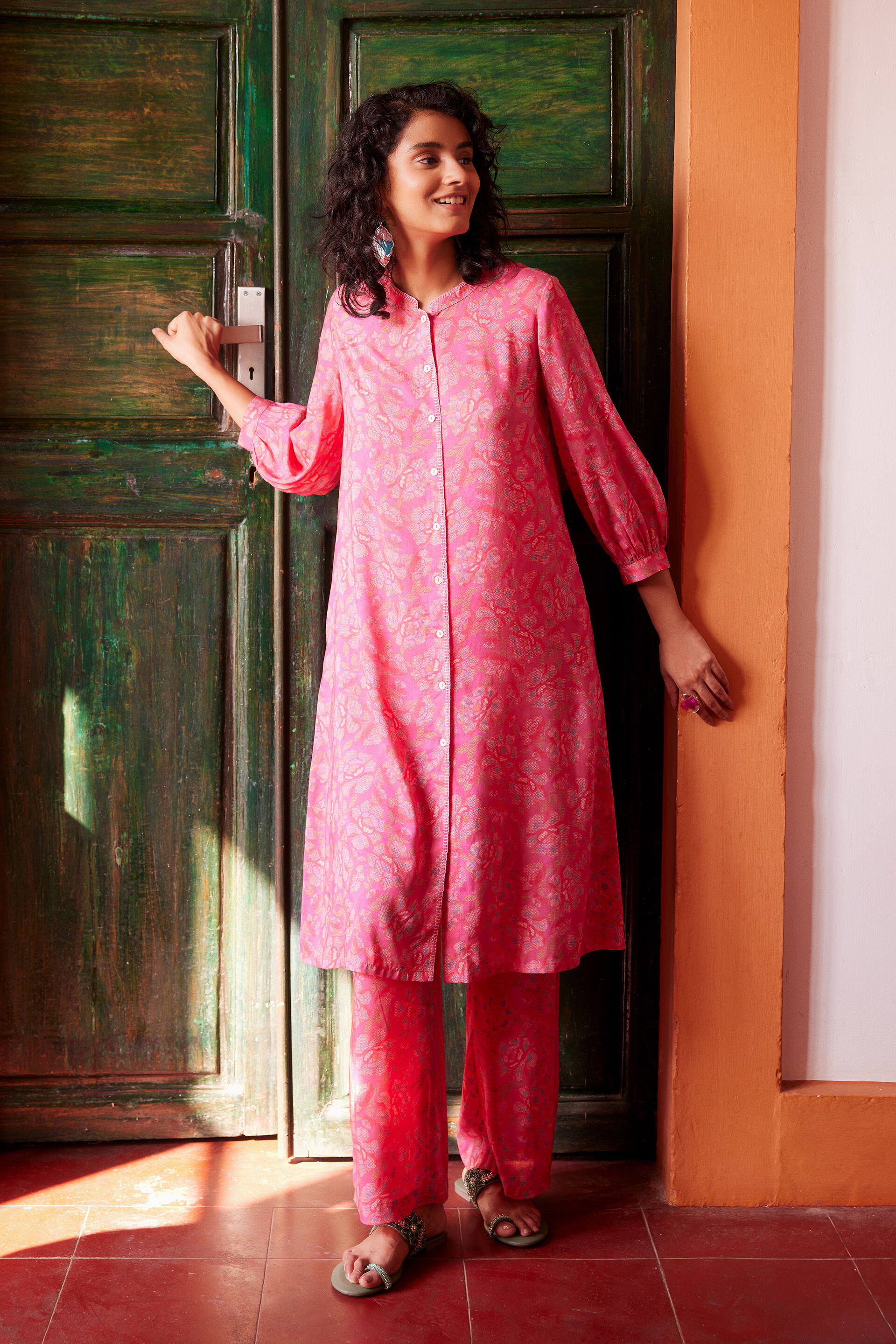 A vibrant pink co-ord set featuring vibrant floral prints all over makes this one perfect for daytime. Crafted in viscose fabric, the relaxed fit makes it easy to wear and the button-down detail gives unlimited opportunities to style this co-ord, much like your other breezy weekend outfits.