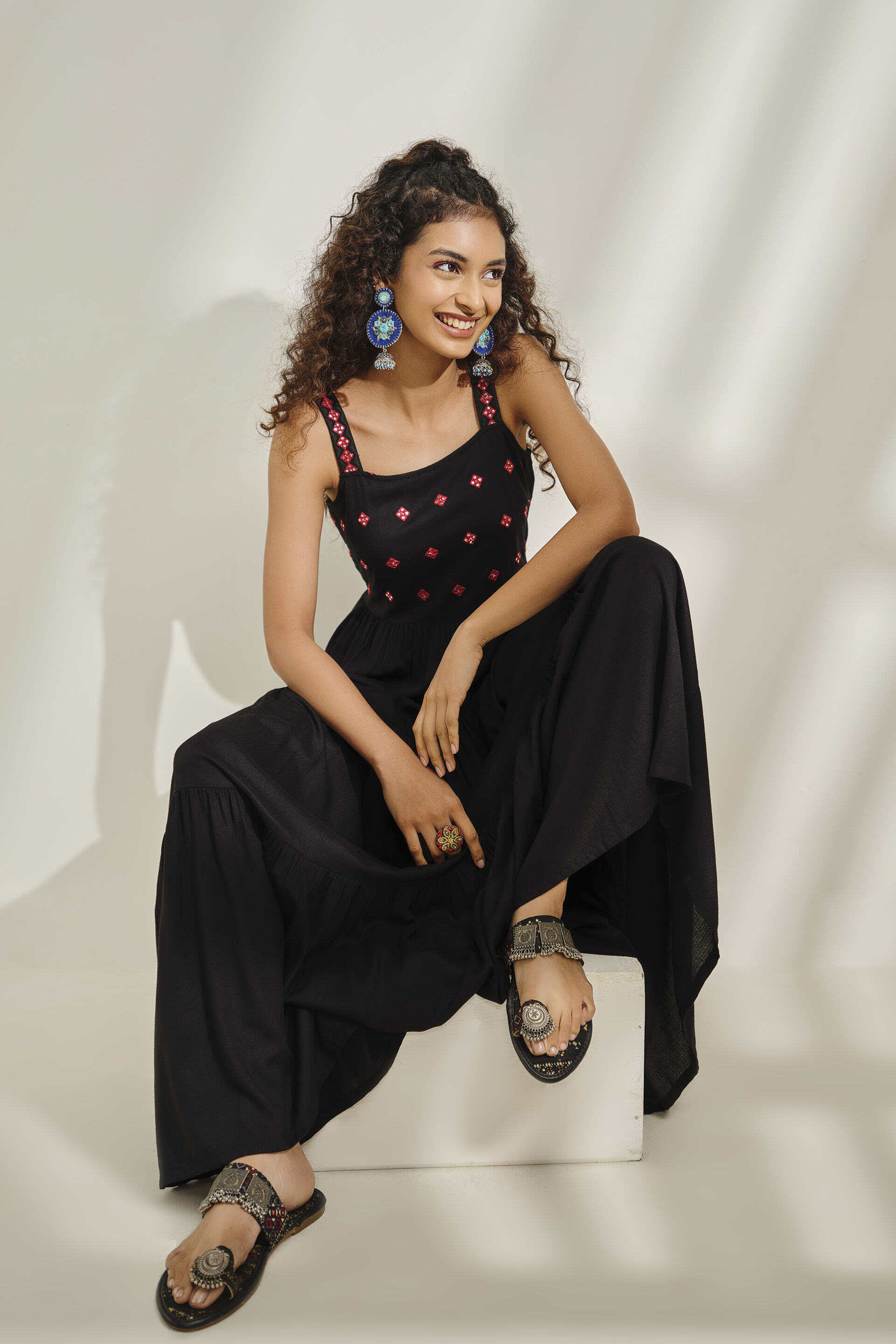 The Black Adaa Maxi brings understated glamour to your wardrobe. Its embroidered detailing, A-line silhouette, and timeless square neck make it a stunning choice for dinners or festive soirées.