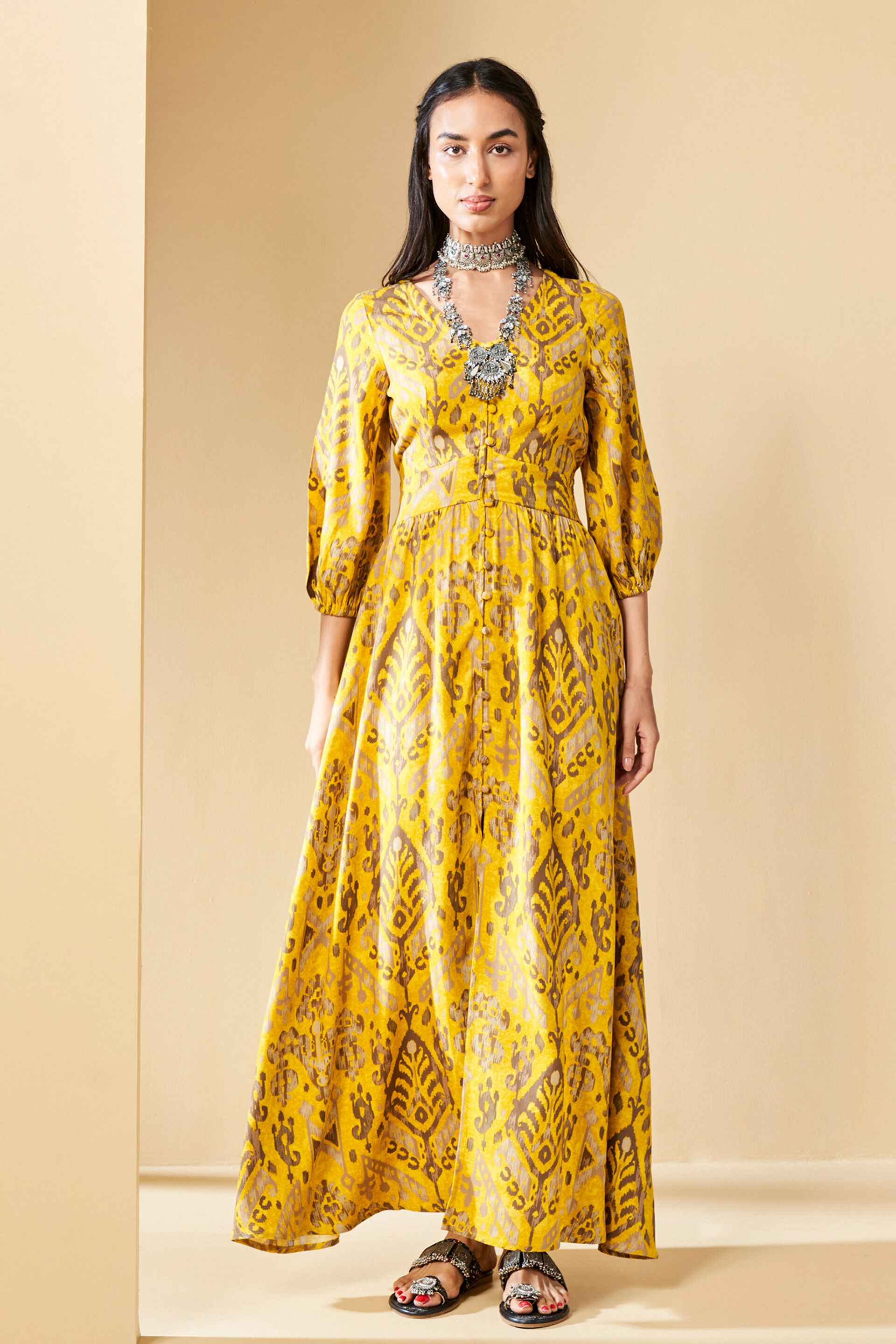 Bring the flair of summer style to your life with this Ikat inspired printed maxi dress. Designed with intricate ethnic motifs, this 100% responsibly sourced EcoveroTM Viscose dress gives you the perfect twirl, every time.