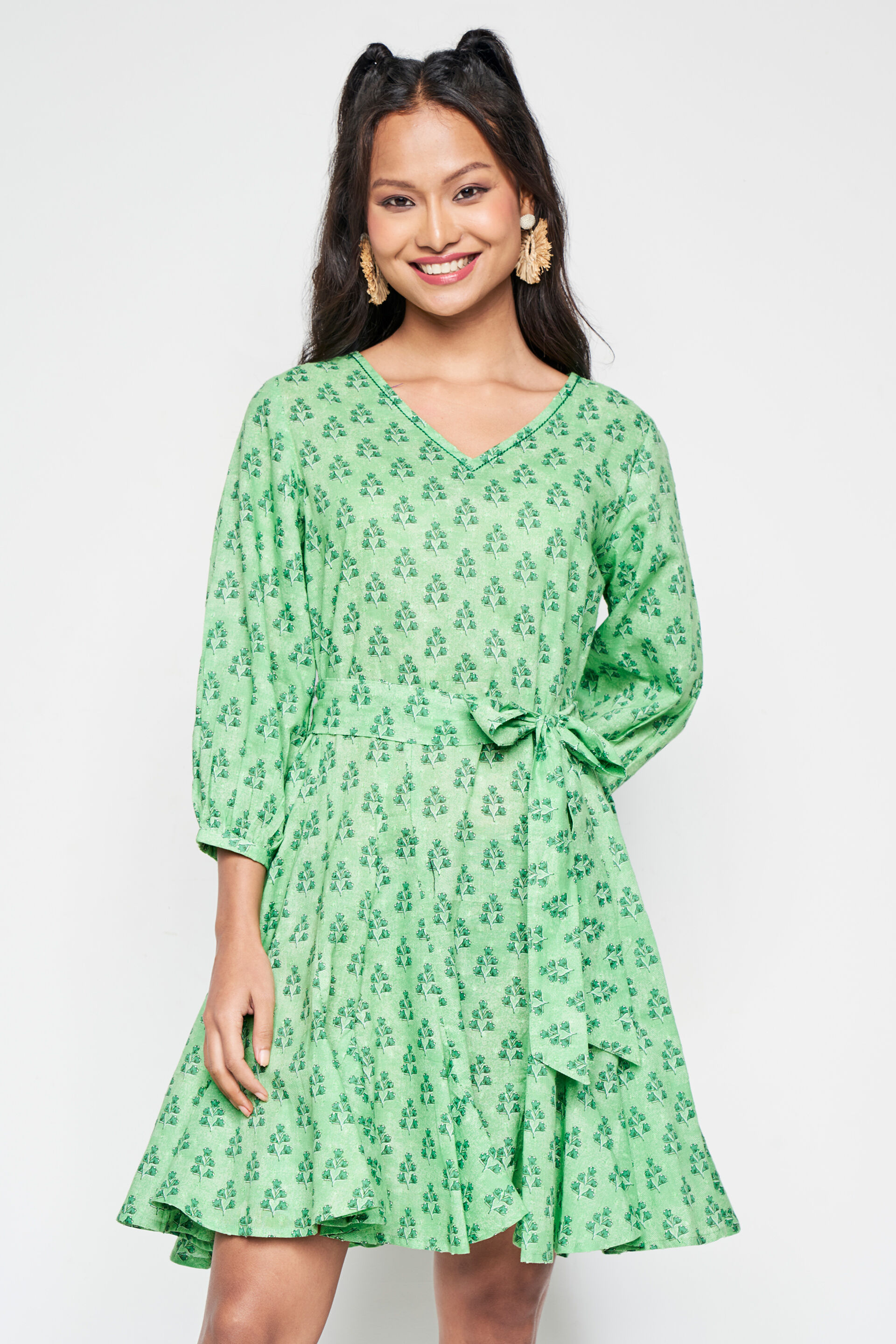 Crafted using soft cotton, this fit-and-flare dress is a warm wardrobe hero. It comes with a fabric belt that allows you to customise its fit and has gentle gathers.