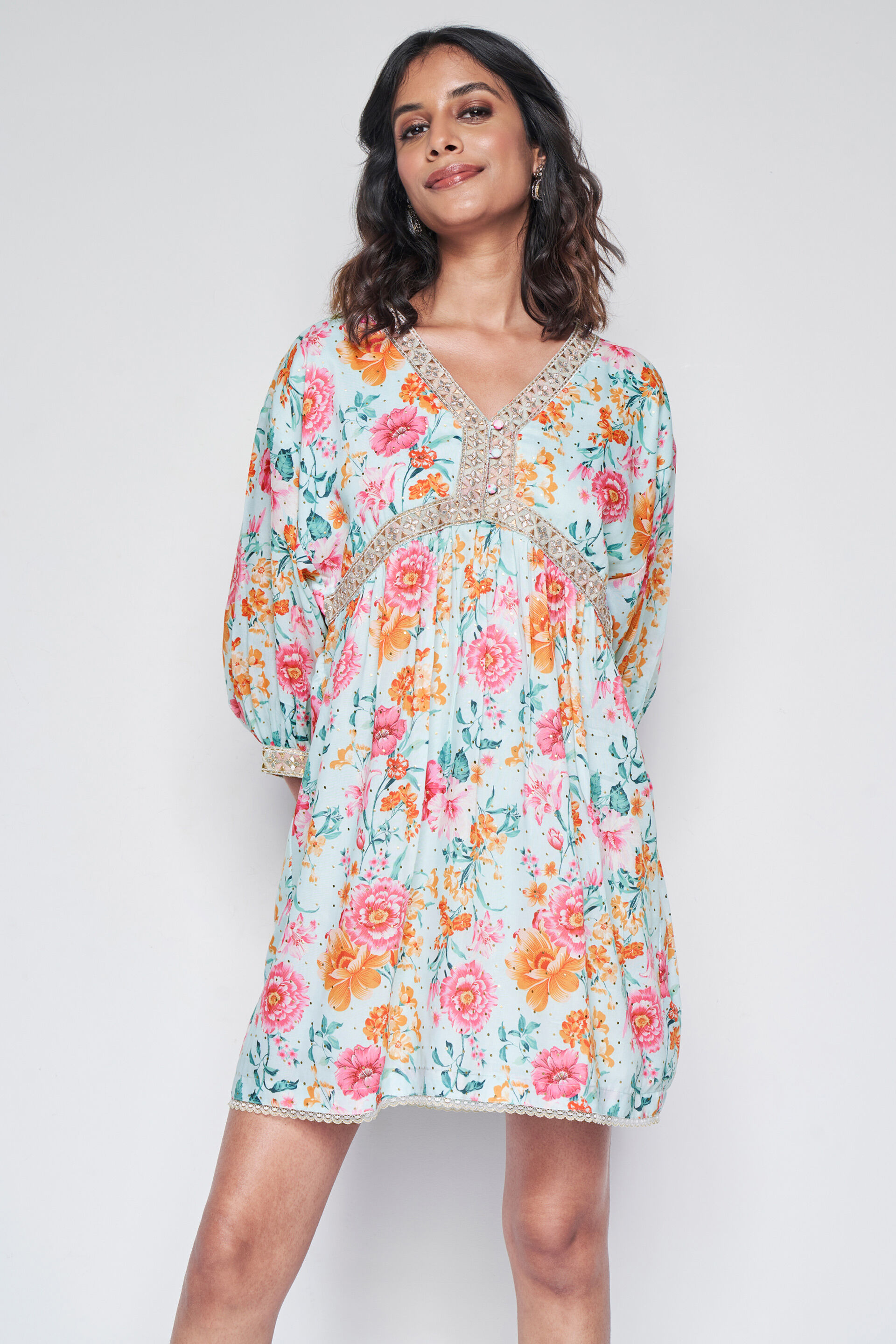Featuring a vivid floral print, an embroidered neckline and a relaxed silhouette, our Positano dress is a warm-weather must-have.