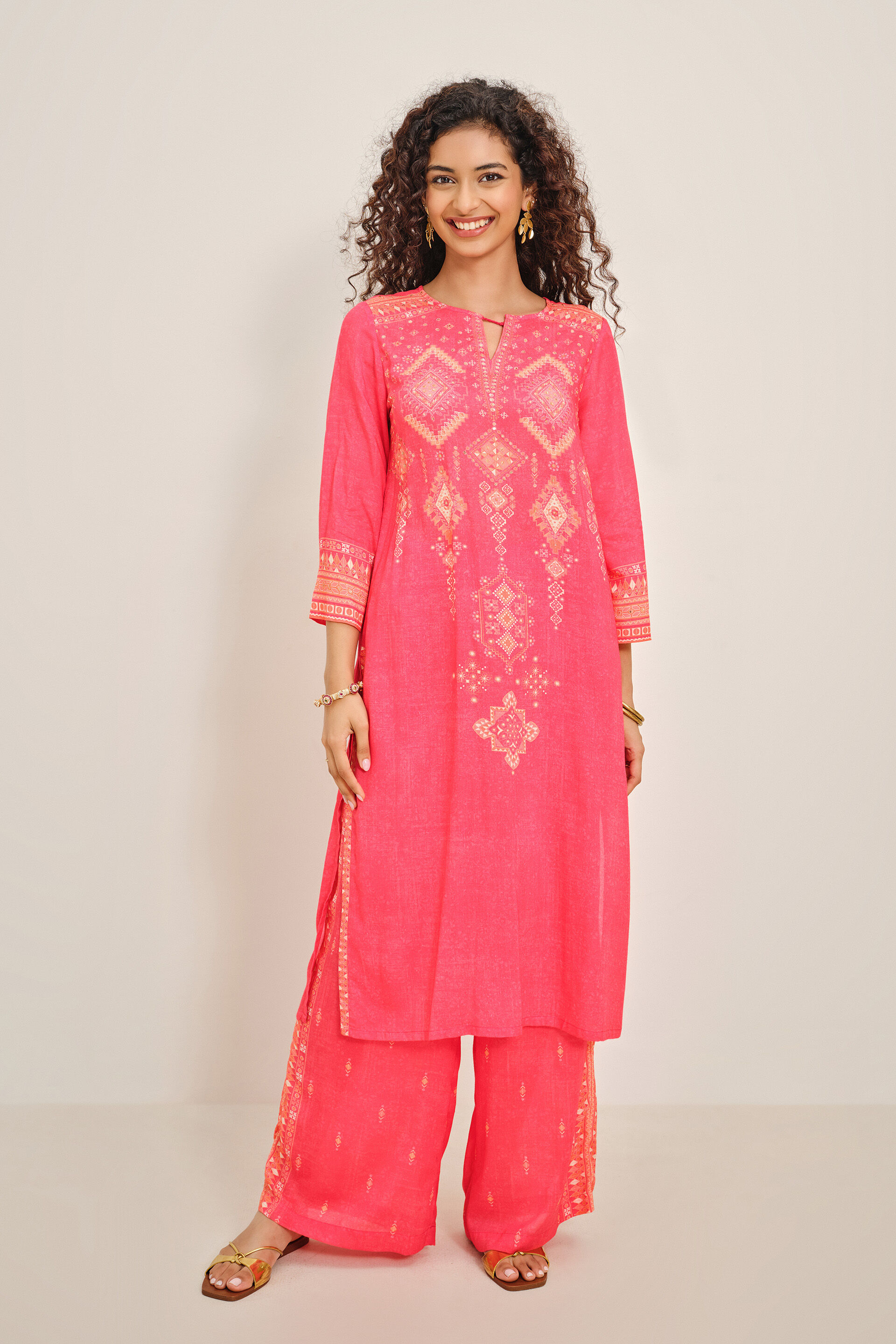 Soft, breezy, and full of personality — this set made in premium viscose brings together a printed kurta and easy pants for that chill-but-polished vibe. Add your favourite jhumkas, and you’re ready in minutes.
