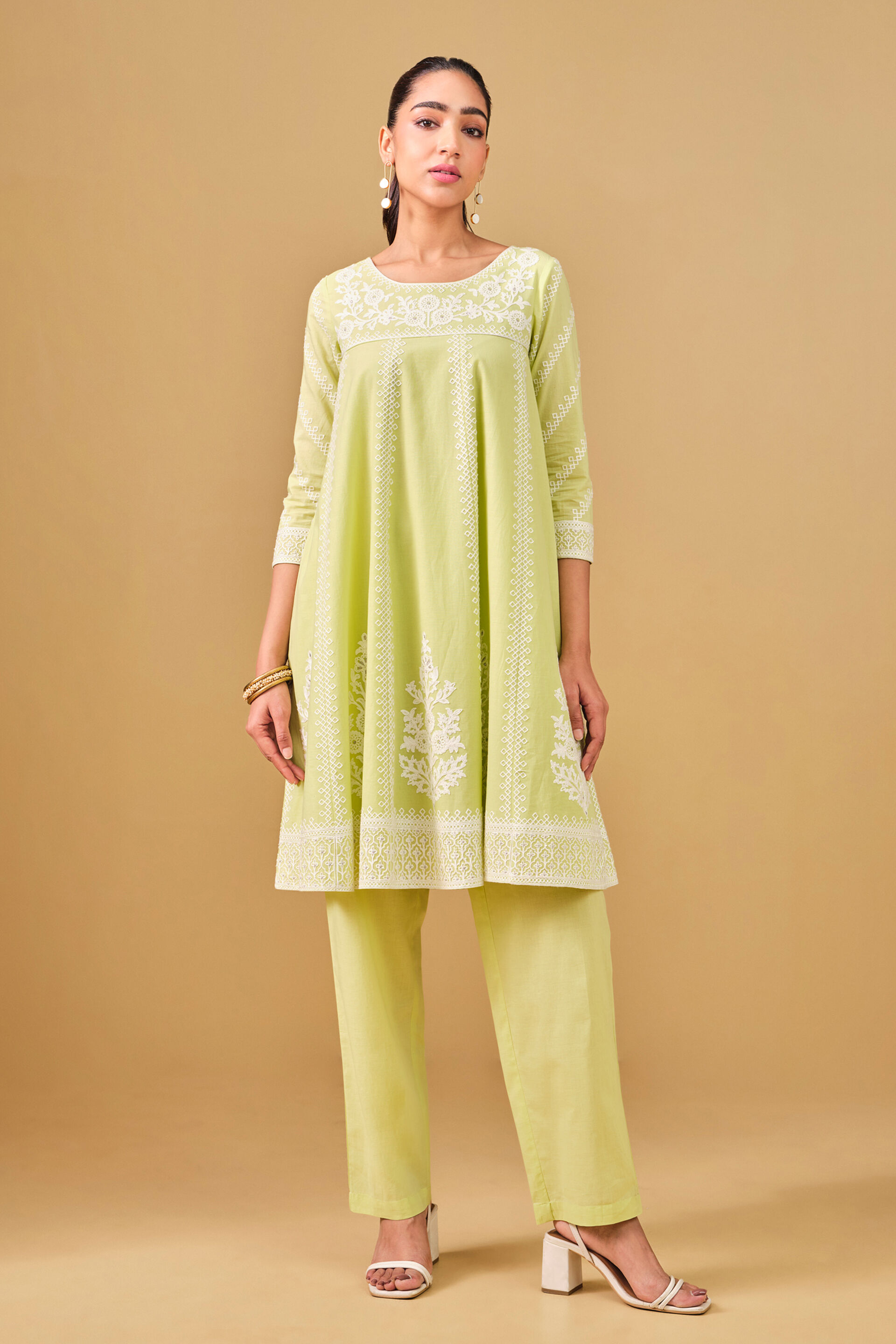 Lime Green Embroidered Cotton Kurta Set