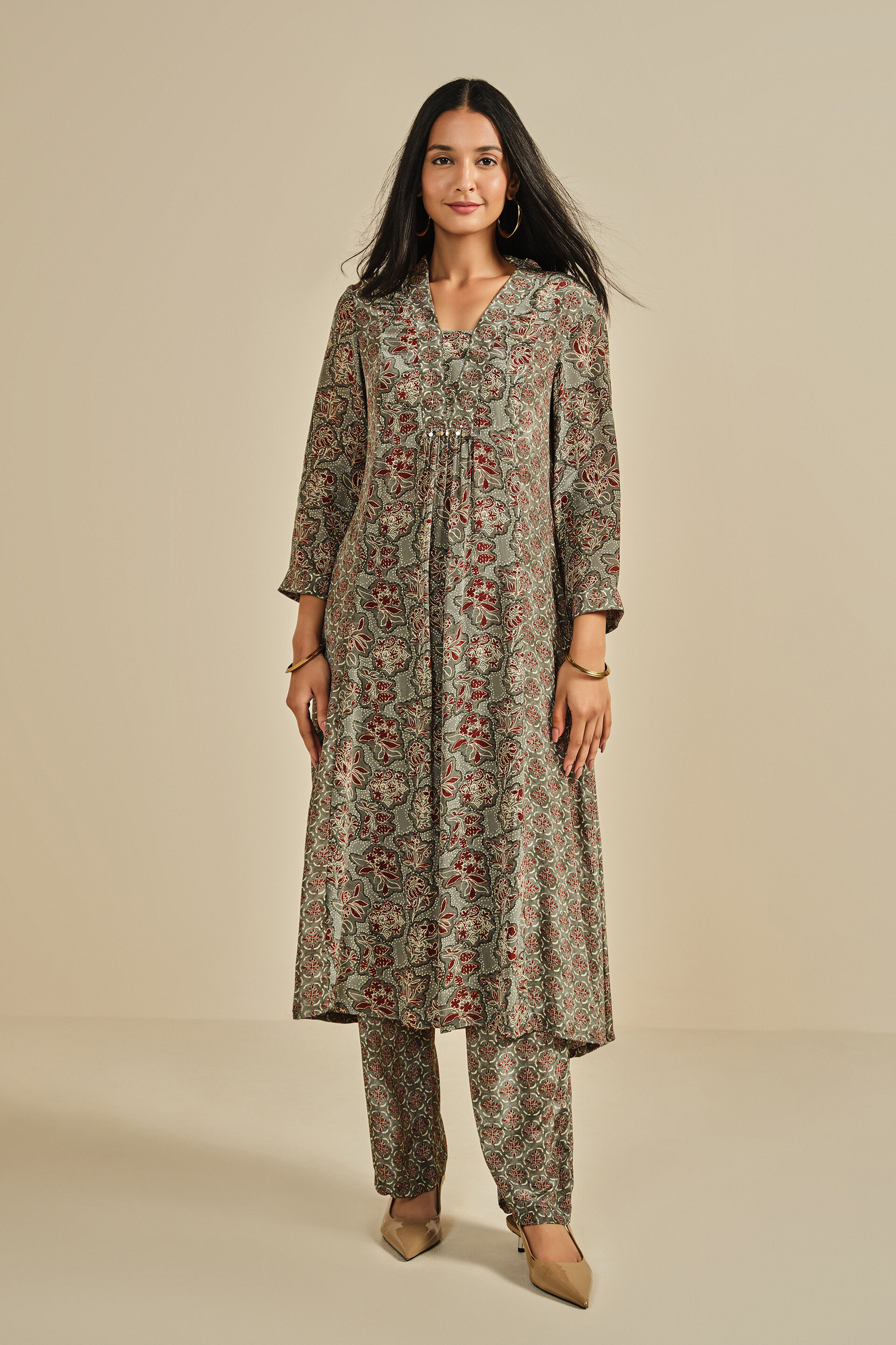 A bold & beautiful set to upgrade your daytime looks, our Pyaar Berry Kurta Set features India-inspired prints all over. Crafted in soft eco-friendly viscose fabric, this set comes with three-quarter sleeves & an embellished V-neckline. Ideal for casual outings, day events, and informal gatherings.