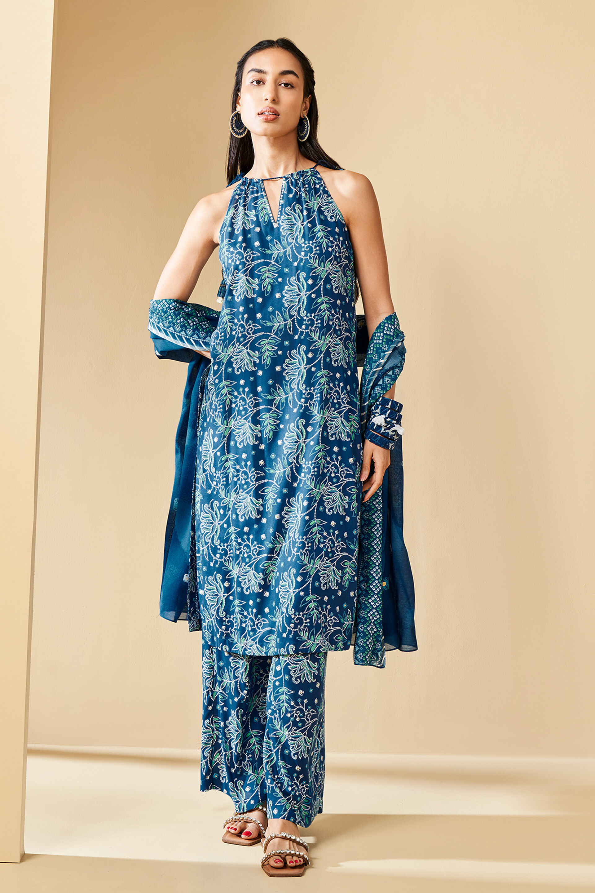 One of our bestselling silhouettes, this 3-piece set is an elegant choice for any occasion where you want to show off your style. Crafted using 100% viscose and complete with adjustable straps, playful tassel details and ethnic motifs, this set is definitely going to become a fast favourite.