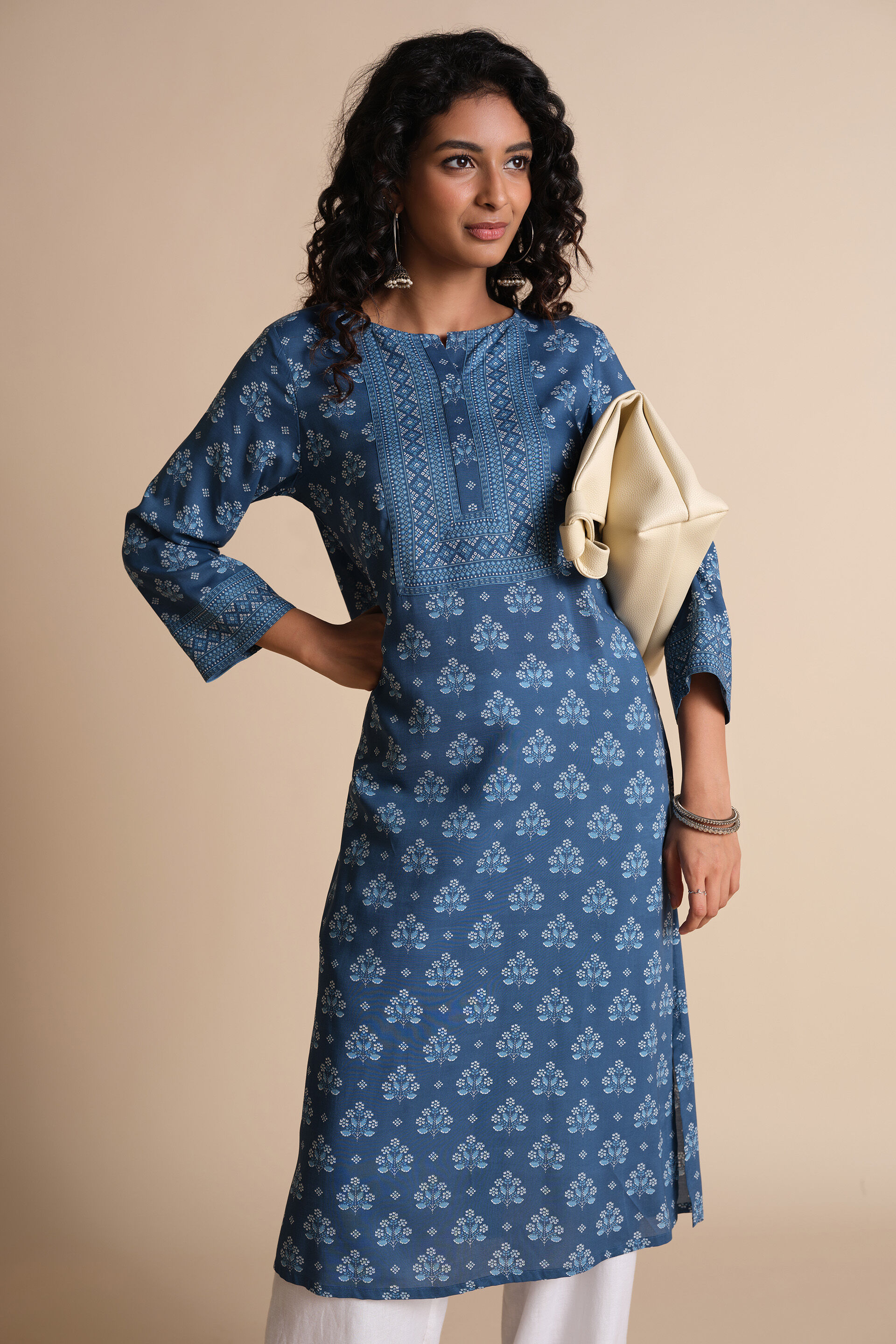 For sweltering days when you want to wear something easy and breezy, our Baarish kurta is the answer. Crafted in soft & flowy modal, this kurta features India-inspired prints with three-quarter sleeves, a tie-up detail & a round neckline. Perfect to simply wear with breezy pants & sandals to step out & explore the city in style.