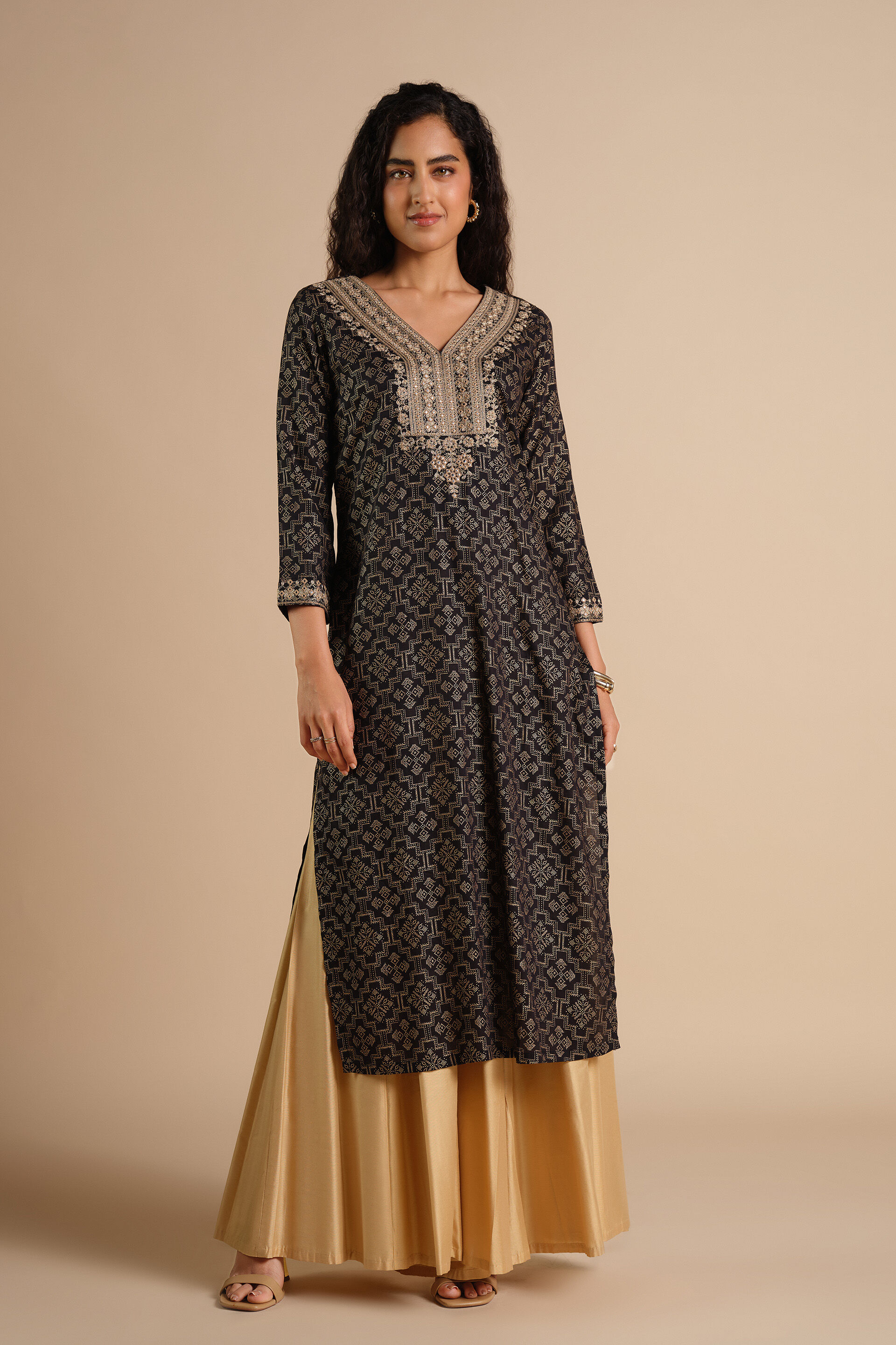 Celebrate in style with the Man-mast Kurta, designed from soft & breathable viscose fabric. This lightweight & easy-to-wear kurta features multi-colour threadwork with mirror and zari details on the neckline & sleeves. It comes with a V-neckline, three-quarter sleeves and 2 pockets. Pair this kurta with flared pants for a breezy look or straight pants for a classic look.