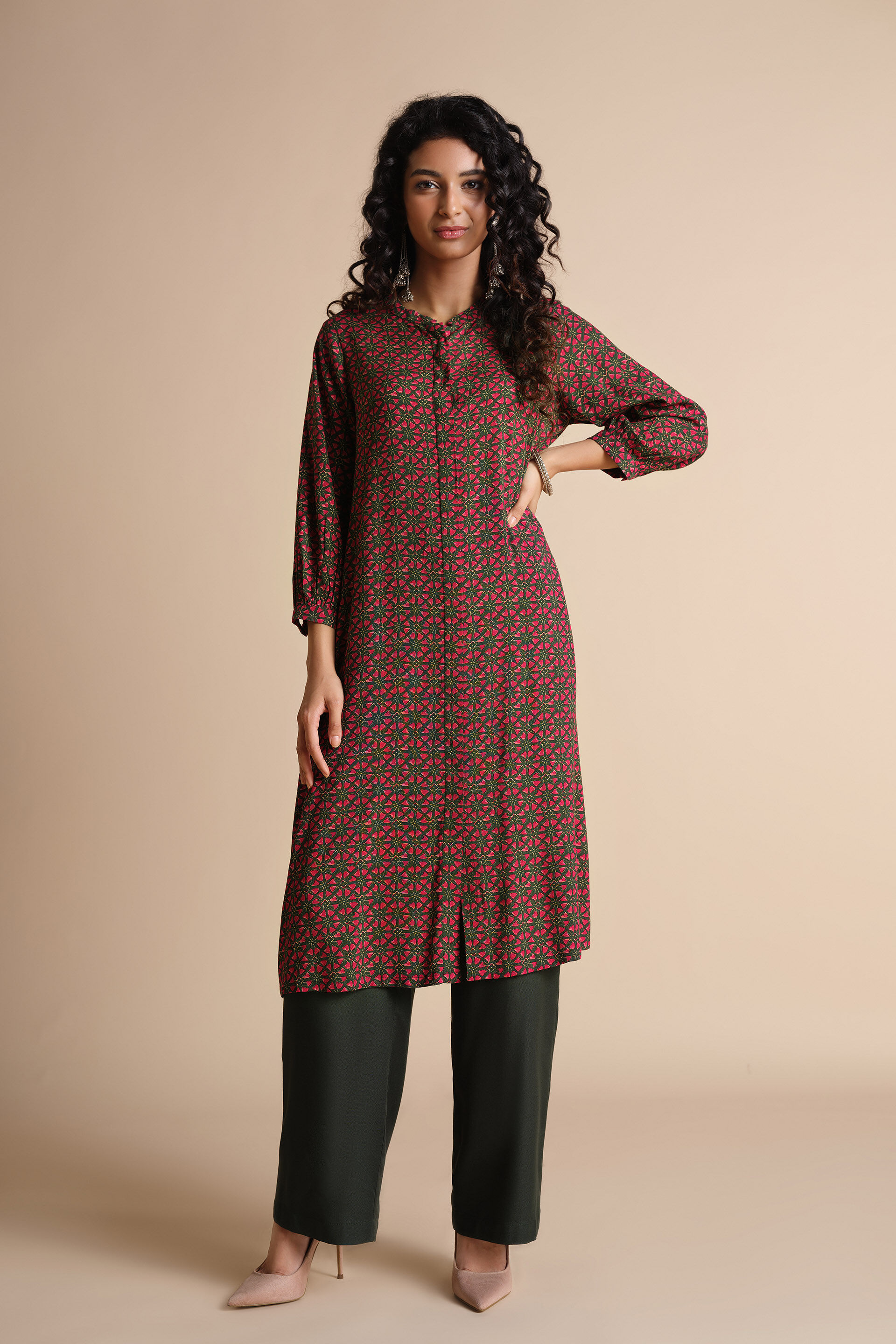 Fuss-free and easy to style, this relaxed fit kurta features India-inspired prints. Crafted in a soft & breathable modal fabric, this kurta comes with three-quarter sleeves & a round neckline. Style this kurta with straight pants at work and atop flared pants for the weekend.