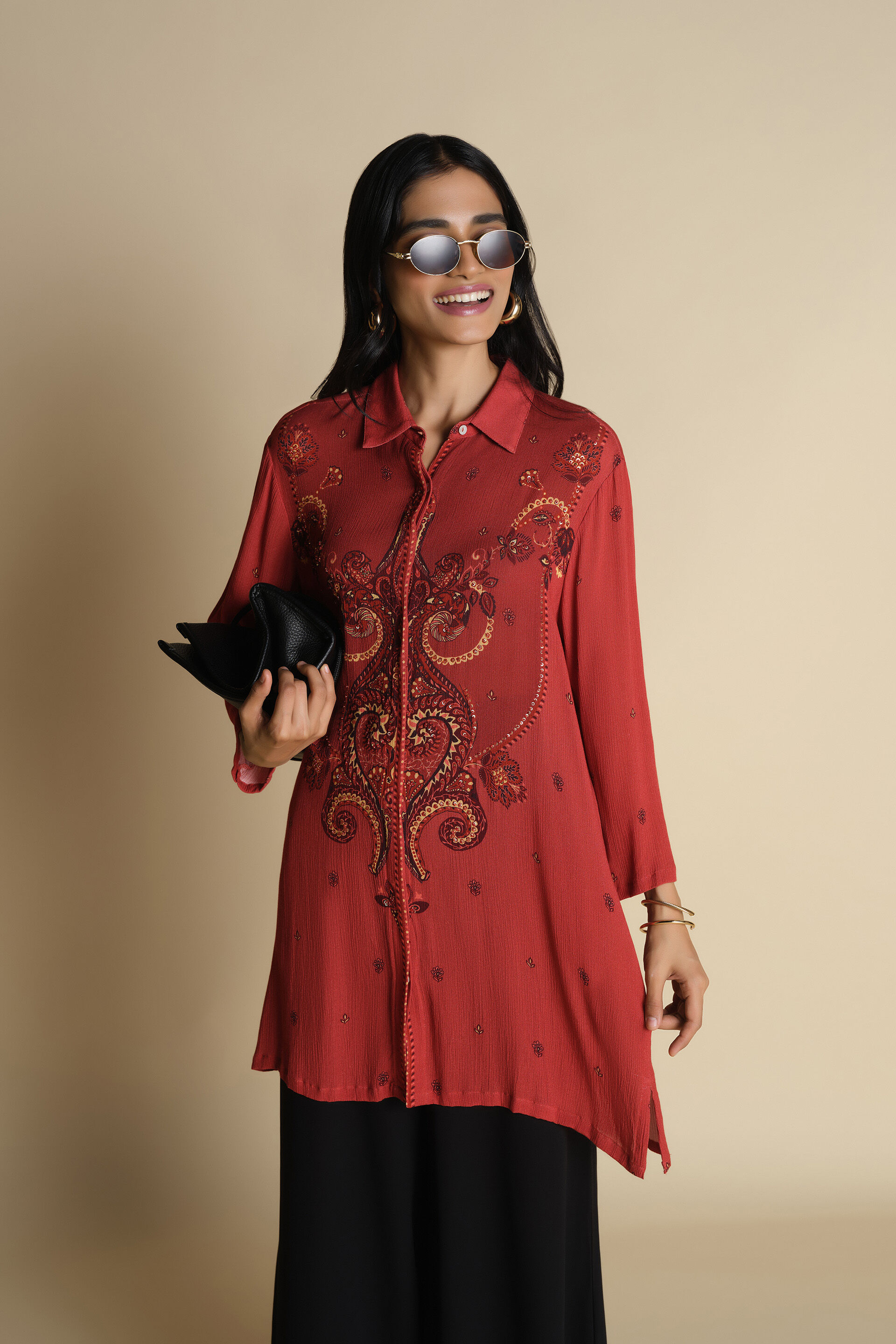Crafted from a soft & comfortable viscose fabric, this vibrant top features an elegant India-inspired print. It is perfect for casual outings, day events, and informal gatherings.