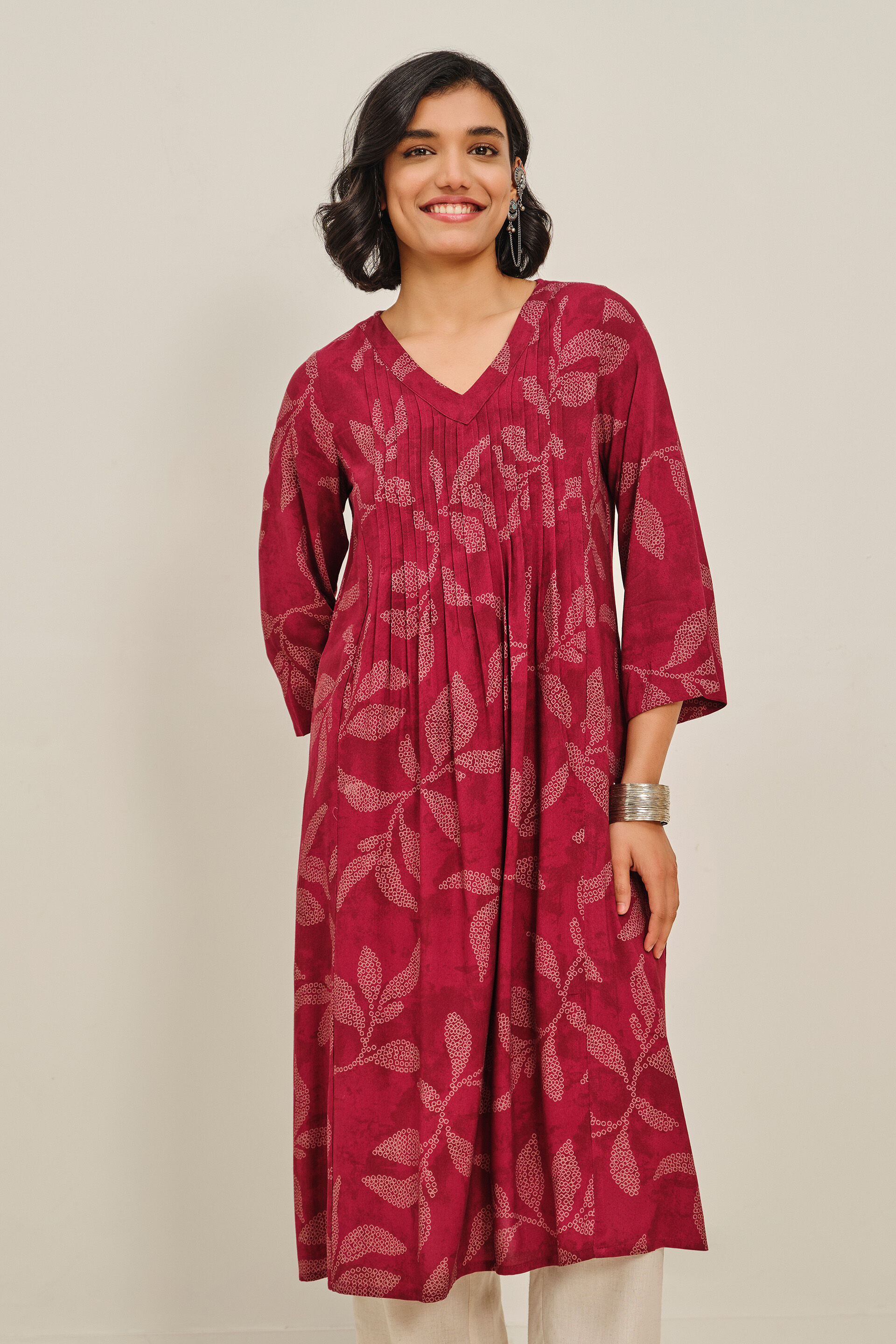 Effortless and chic, the wine kurta blends classic black with playful prints. Designed with a V-neckline and a flattering A-line fit — it’s your perfect pick for workdays, casual hangouts, or evening strolls.