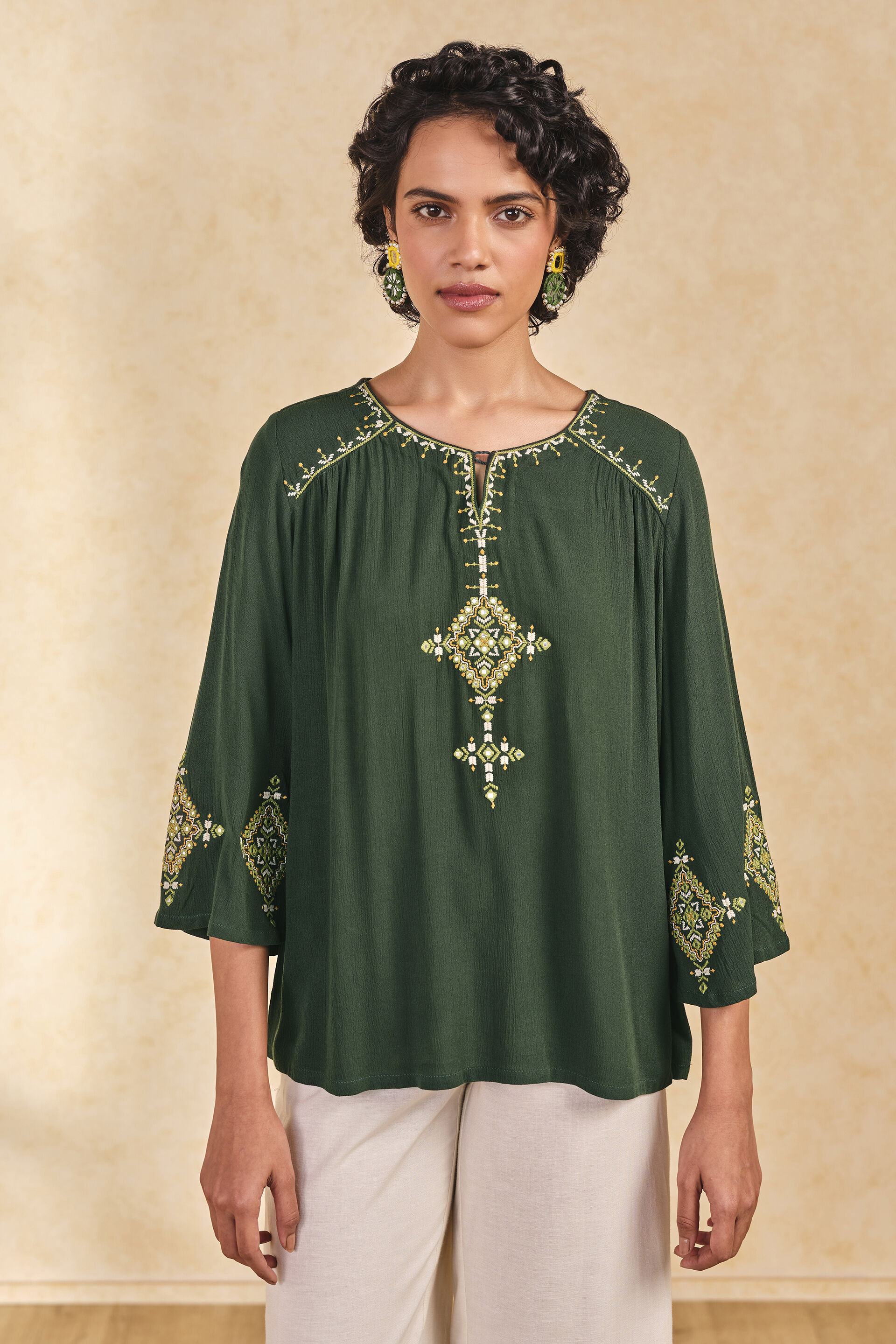 Green Embroidered Short Top
