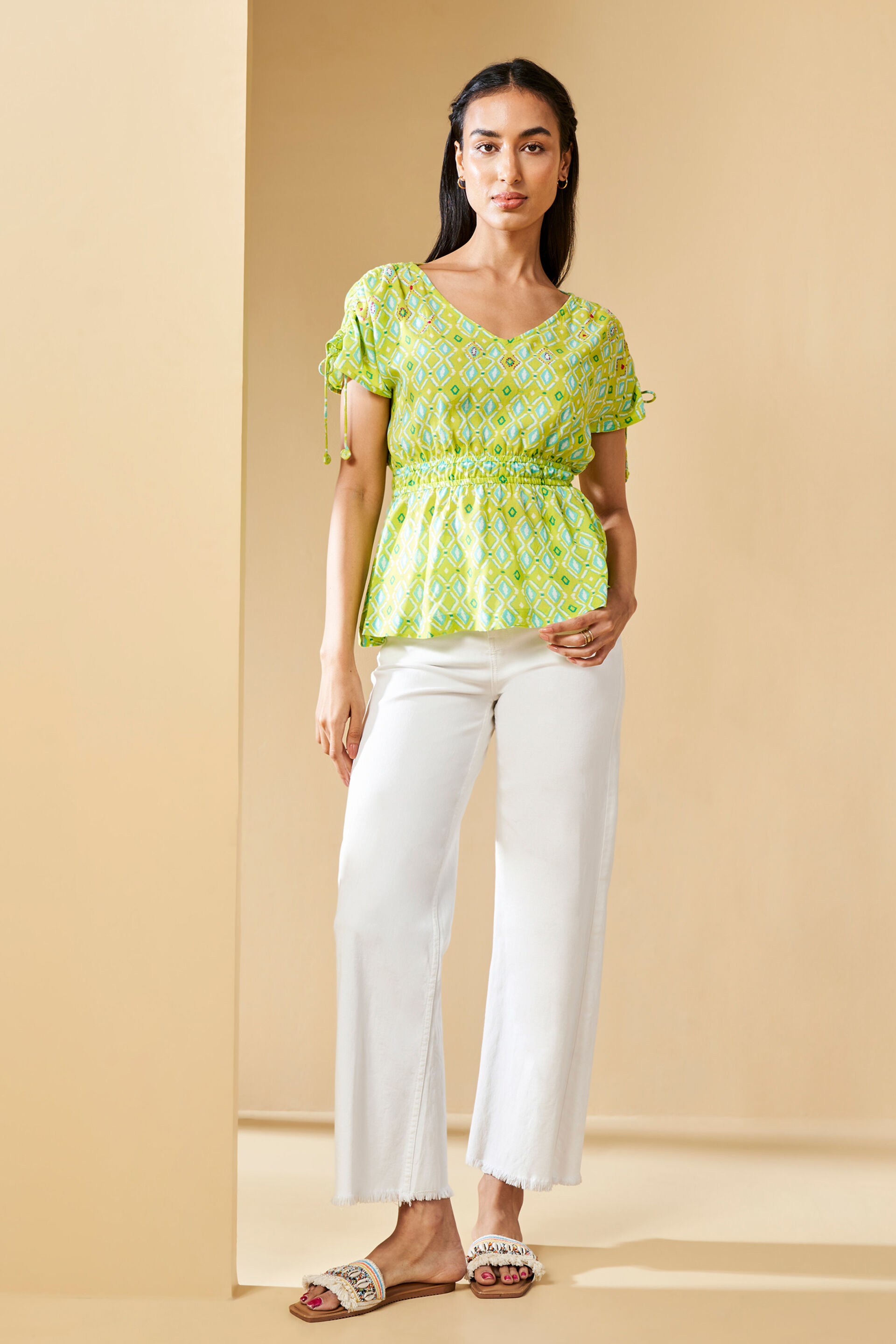 Whether it's a girls' day out or one of self-love, this top is the perfect partner for all your plans. Crafted in 100% Viscose, this top has delicate embroidery, ethnic motifs, and some fun tie-up details for a perfectly casual look.