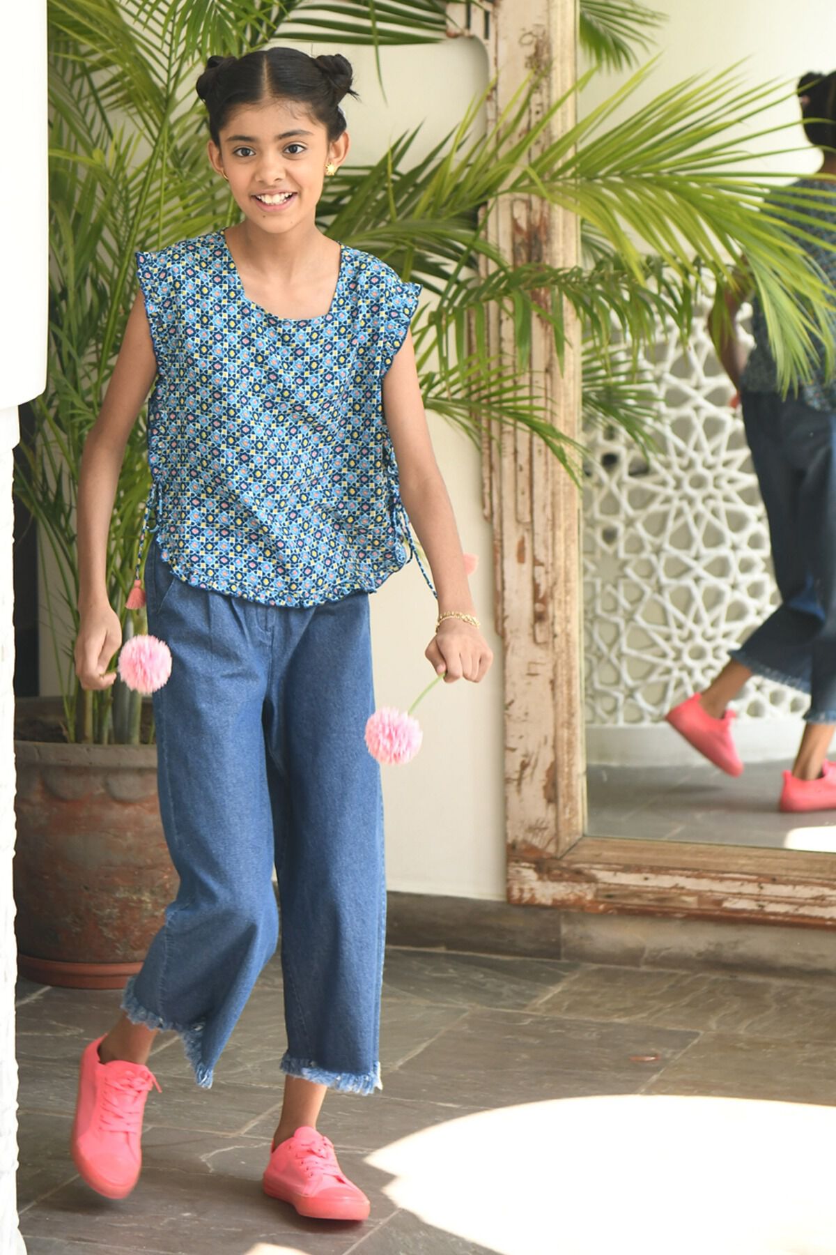 Pump up her summer closet with this stylish pair of wide-leg jeans with detailed fringe at the hemline. Made from the best quality of cotton, breathable and great for uninterrupted movement. Stylize these jeans with a variety of fashionable tops or even solid basic T-shirts and with sandals or just sneakers to make running around more fun.