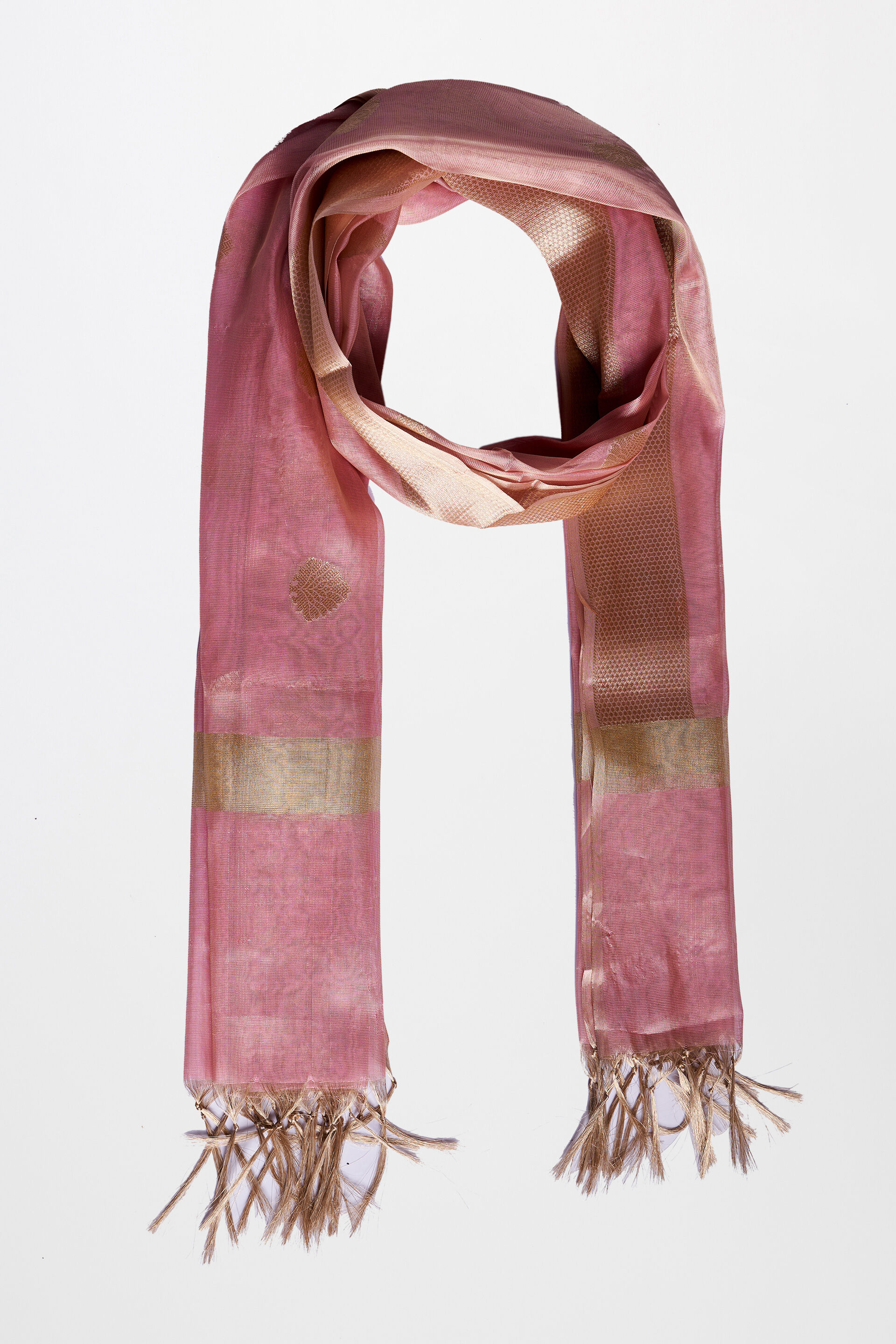 Stylise your solid tops and kurtas with this elegant stole for women from Global Desi. Fashioned in soft material for utmost comfort in a stunning peach shade with gold thread detail. Adorn it in different ways and accessorize suiting the occasion. Manufactured by - Ochre and Black Private Limited, Plot No R 847/1/1, TTC Ind. Area, MIDC, Rabale, Navi Mumbai, India –400701 Country of origin: India