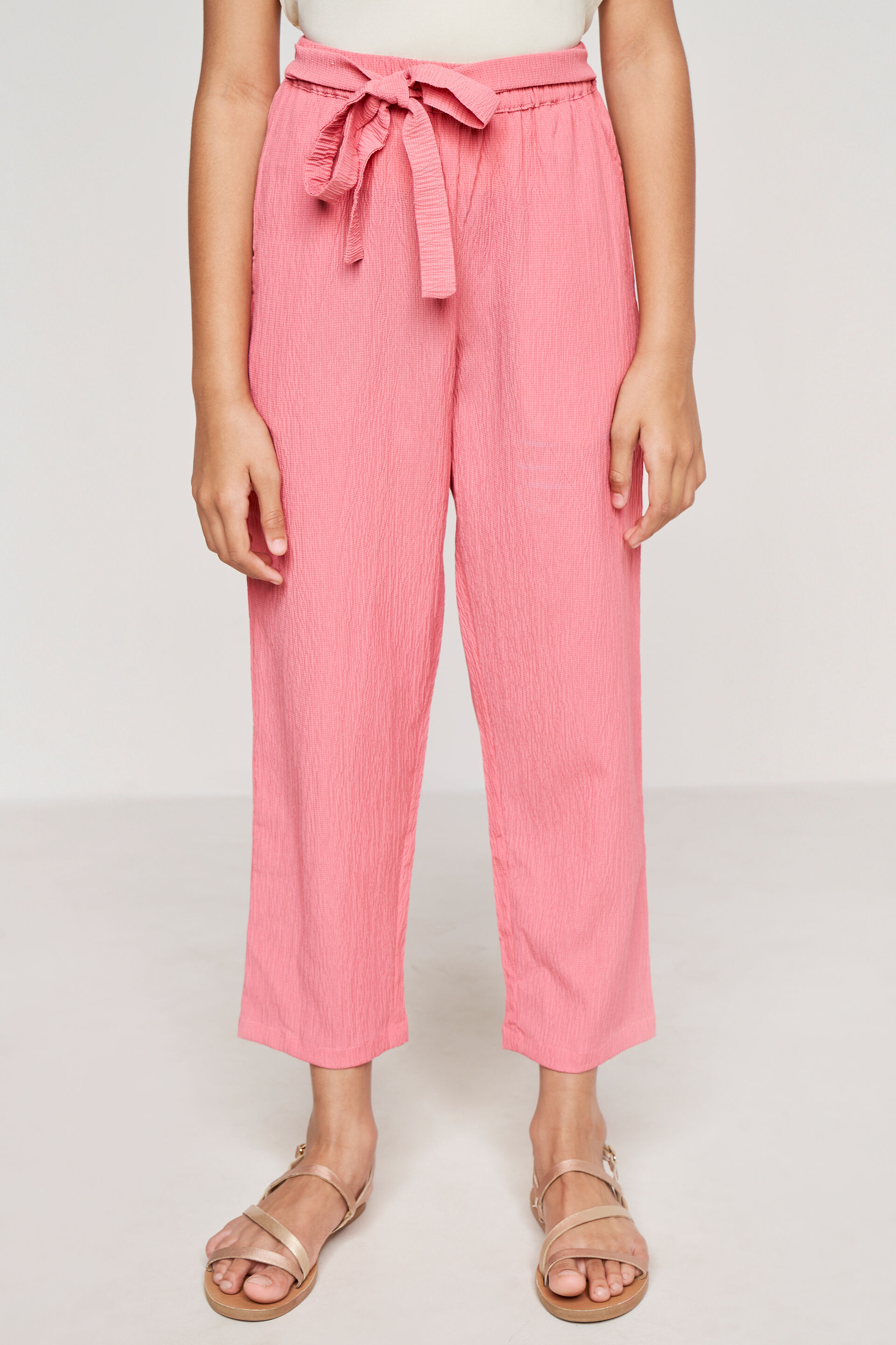 Fashioned from breathable textured material these super-comfy trousers for girls from Global Desi. These pink trousers have an elasticated waistband and a tie-up bow for the best fit. It can be paired with an assortment of T-shirts and shirts. Extremely convenient for those school trip hikes or even play dates. Team it up with sandals or white sneakers for that extra comfort and ease.