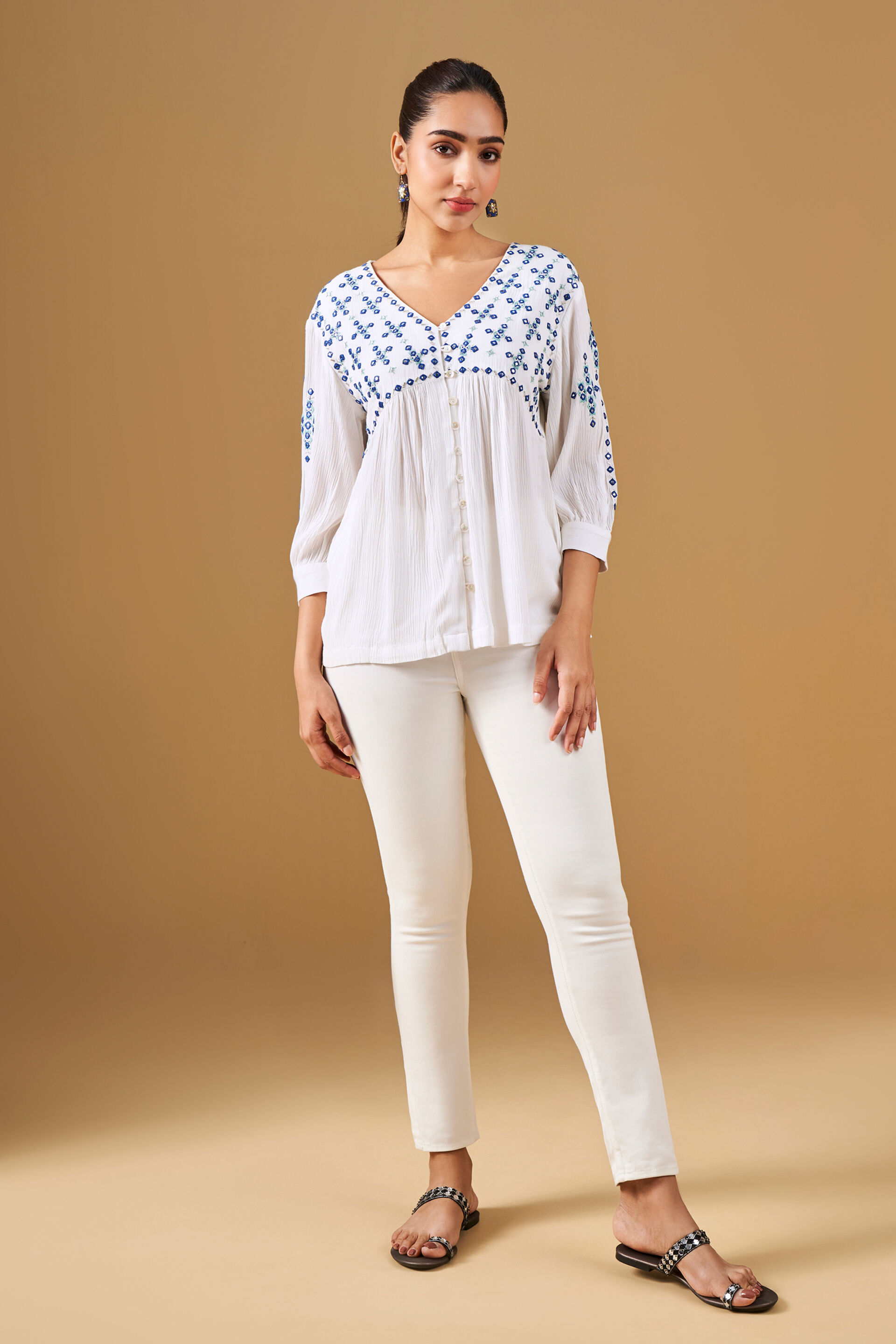 White Mirror Embroidery Viscose Top