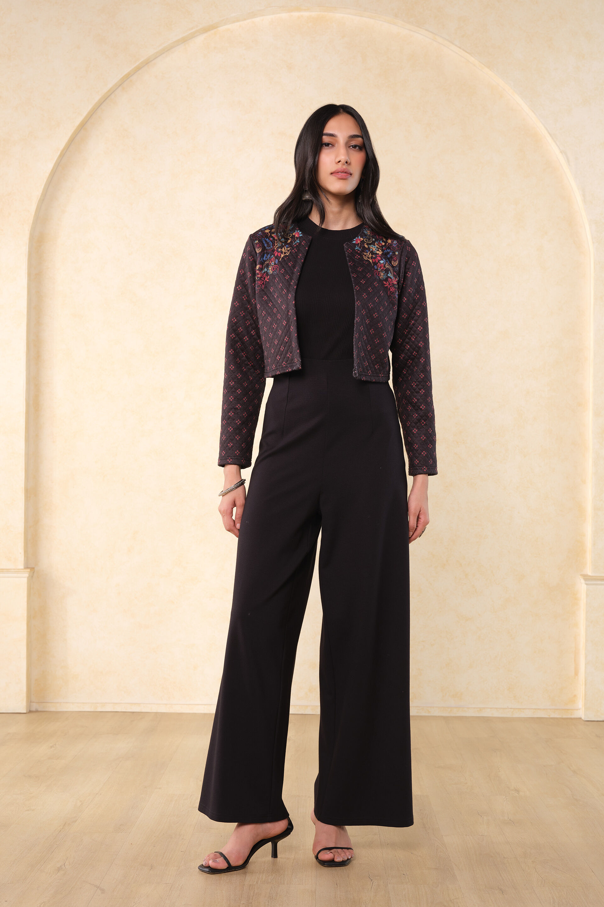 Upgrade your winter looks with this chic quilted jacket in ash grey. Featuring a statement floral print over the shoulders and intricate motifs printed all over, this jacket comes with long sleeves and is versatile enough to be paired with any of your looks.