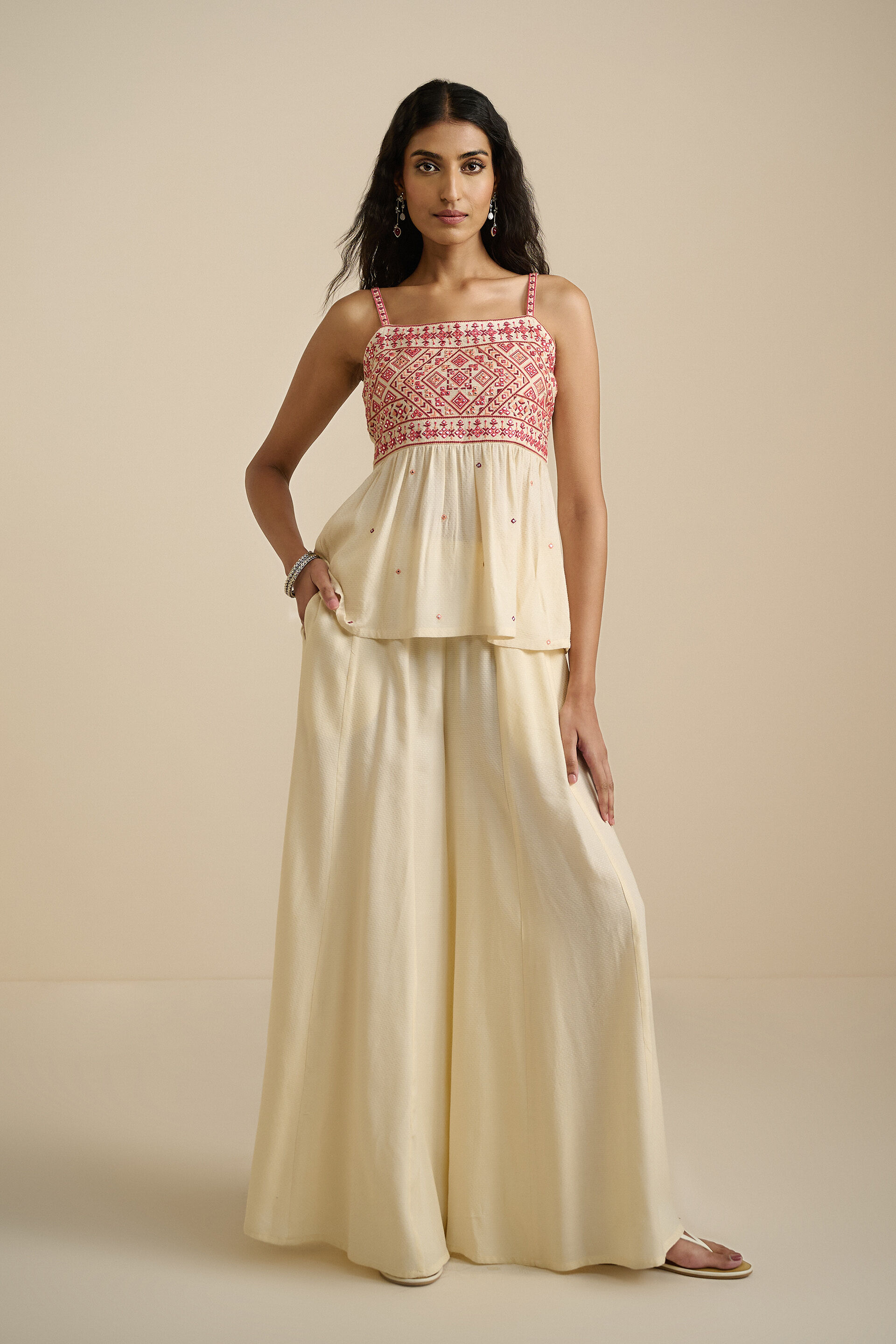 Delicate straps, a square neckline, and subtle embroidery make the Ziya Wine Top a striking wardrobe pick. Crafted from viscose, it pairs effortlessly with skirts, palazzos, or denim for both festive evenings and casual brunches.